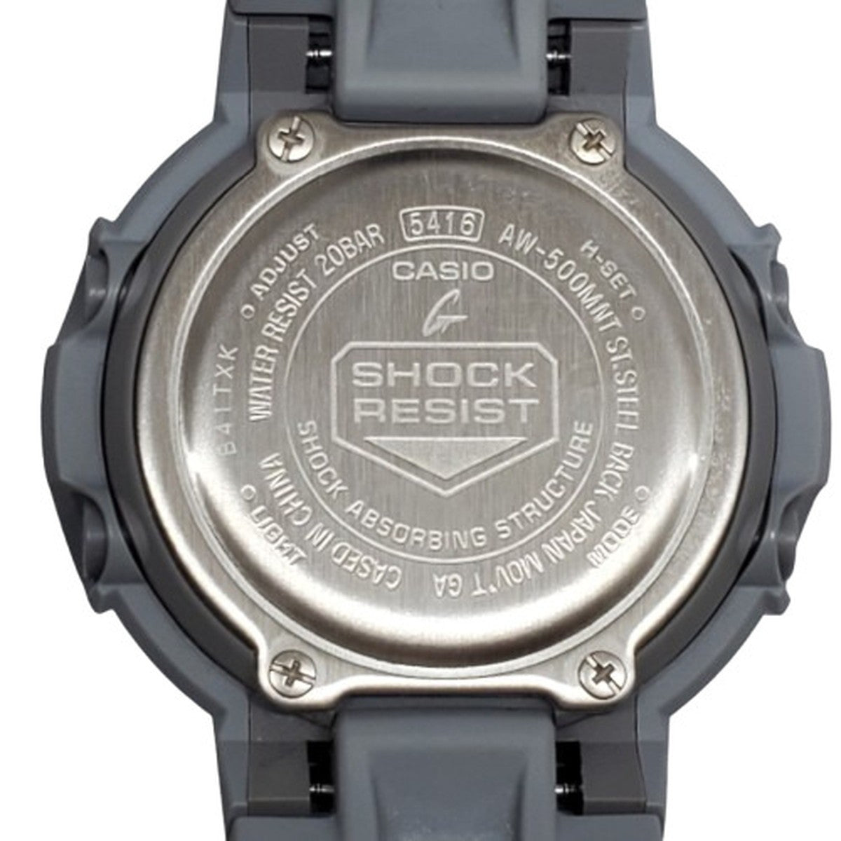 | コメント | G-SHOCK AW-500MNT-8Aは、ラウンドフェイスが特徴的なアナデジ腕時計です。落ち着いたグレーの色合いは、カジュアルながらも洗練された印象を与えます。クォーツムーブメントを採用し、正確な時を刻みます。2021年6月に発売されたモデルで、G-SHOCKらしいタフな構造と、現代的なデザインが融合した一本です。 |