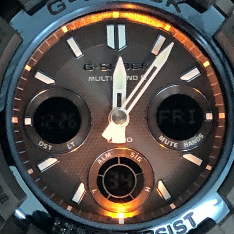 | コメント | 2012年1月に発売された、タフソーラーとマルチバンド6の電波ソーラー機能が搭載されたコンパクトサイズのアナログ/デジタルモデル。ベゼルとバンドにはブラックが採用され、メタルが採用されたベゼルリングや文字盤のロゴには、アクセントカラーとしてメタリックブルーが配色されています。ライトにはフルオートのLEDライトが採用されています。 |