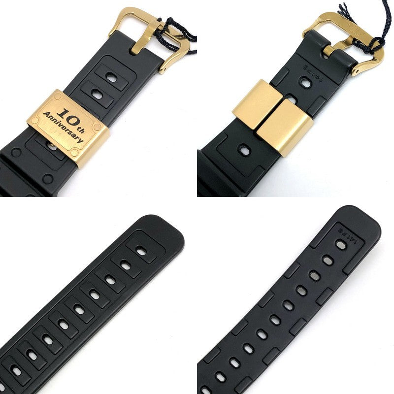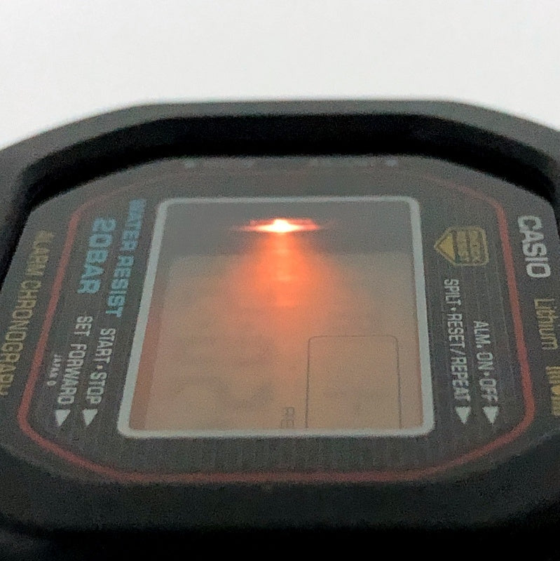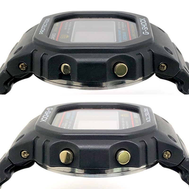 | コメント | 1993年5月にGショック発売10周年を記念し、1983本限定で発売された「10th ANNIVERSARY」モデル。G-SHOCKの初号機DW-5000C-1Aの復刻モデル。モジュールには901に採用され、スクリューバックの裏蓋にはオリジナル月桂樹ロゴが刻印され、遊環にはシリアルナンバーが刻印されています。ライトはオレンジ豆球です。 |