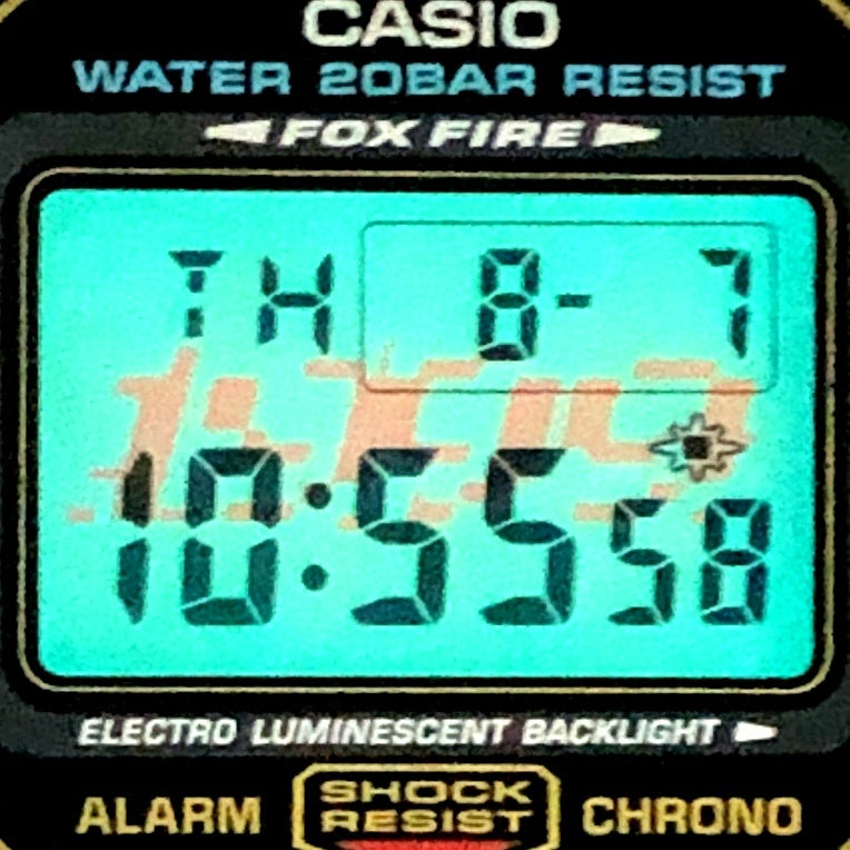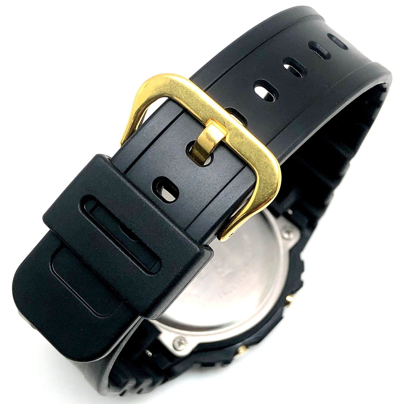 | コメント | 1999年3月に発売された「G-SHOCK 1999 PREMIUM」。ベースモデルはDW-5600EG(Eのゴールドバージョン)で、ELバックライト発光時には1999年をデザインしたマークが浮かび上がります。シリアルナンバー入りのボールペンがセットになったモデルです。 |