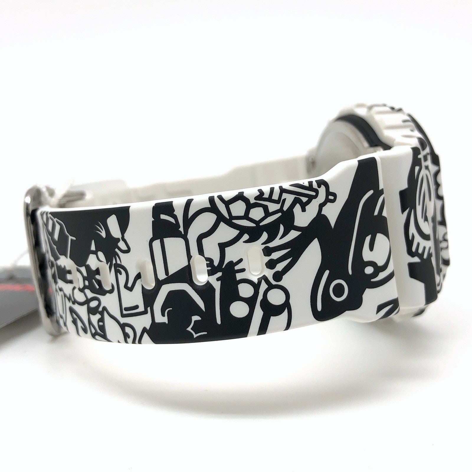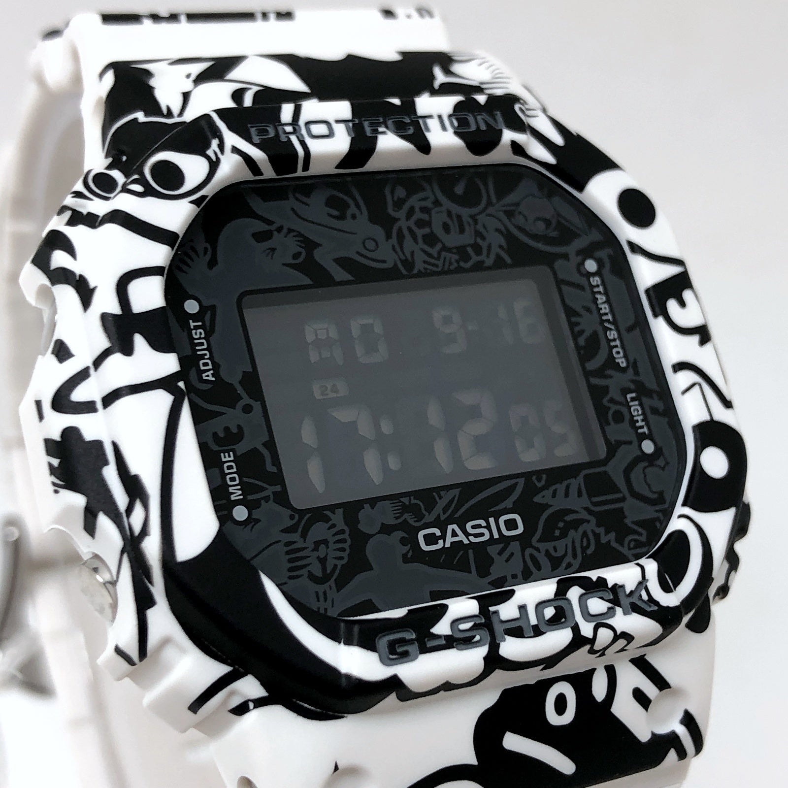 コメント | 2022年7月に発売された、時計全体にGショックのキャラクターがプリントされた「G-UNIVERSE」。歴代Gショックの裏蓋に刻印されたフロッグマンなどの18体のキャラクターがプリントされており、G-SHOCK好きにはたまらないデザインが魅力のG-SHOCKです。 |