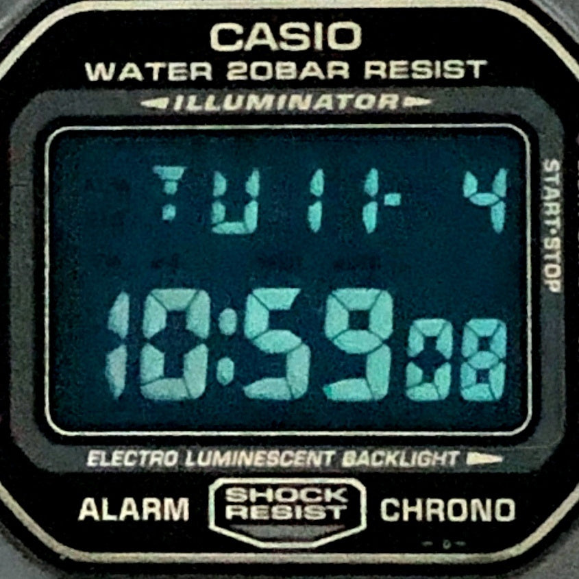 | コメント | 2009年2月に発売された、漆黒の闇をテーマカラーにした「MAT BLACK RED EYE(マットブラックレッドアイ)」。ベゼルやバンドにはマットブラックが採用し、液晶には暗闇でも見やすいレッドの反転液晶を採用。バンドにはステンシル文字でモジュールナンバーがプリントされ、ミリタリーテイストなデザインに仕上げられています。 |