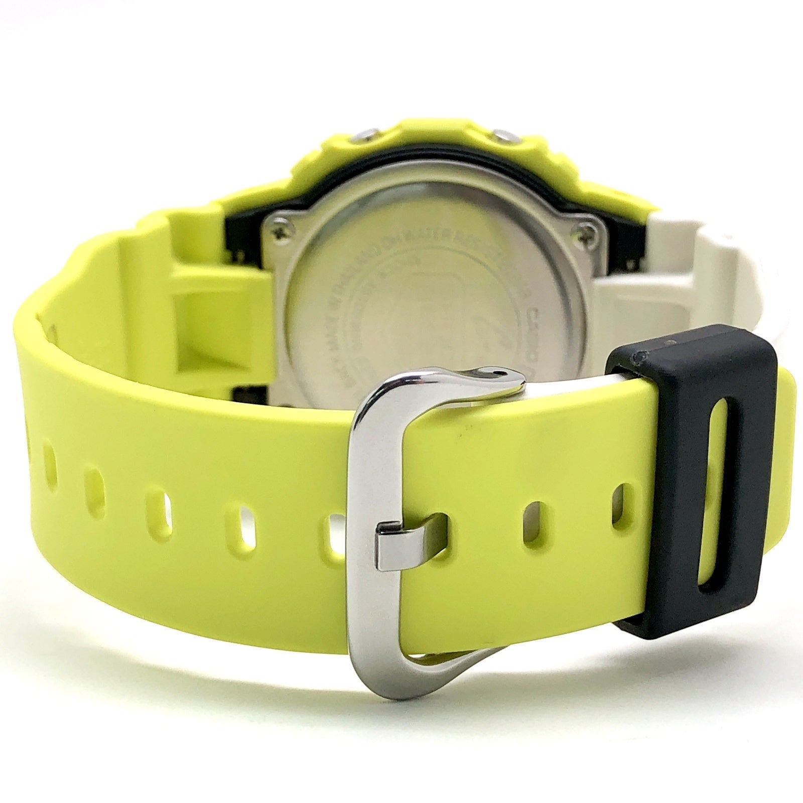 | コメント | 2020年7月に発売された、石川遼選手や八村塁選手などが参加する、G-SHOCKのタフネススピリットに共感し、ワールドワイドに活躍するトップアスリートチーム「TEAM G-SHOCK」向けに制作されたモデルです。ベースにはスクエアフェイスが人気のDW-5600が採用され、強さと俊敏さをイメージした稲妻をモチーフにデザインされています。ベゼルと下バンドには雷光をイメージしたイエローが、上バンドにはアクセントカラーとしてホワイトが配色されています。文字盤にも稲妻のモチーフがデザインされており、ELバックライト発光時には稲妻が浮かび上がります。 |