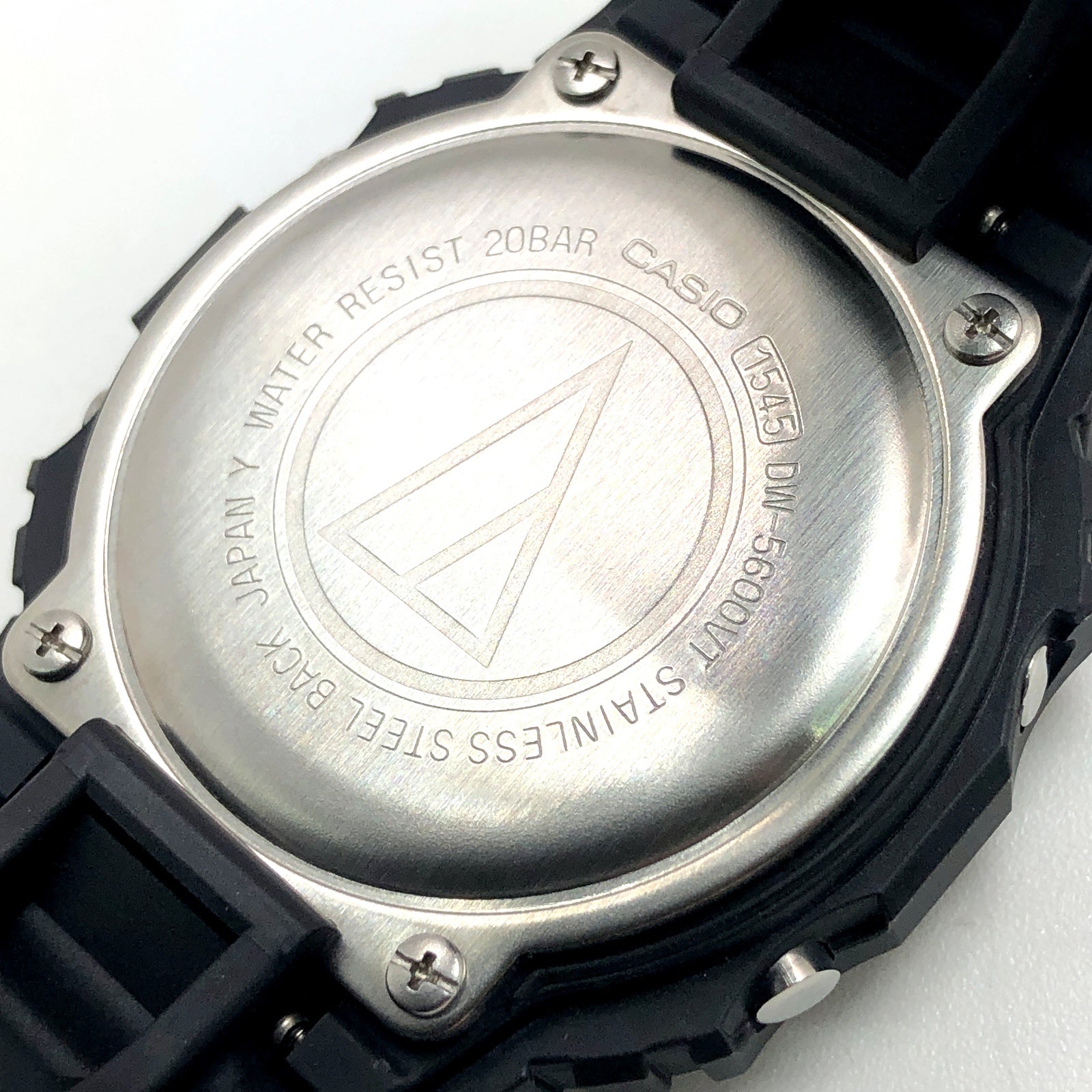 | コメント | 1962年に創業された日本の音響機器・映像機器メーカーであるオーディオテクニカが、2006年12月から2007年1月まで開催していたヘッドホン購入キャンペーンで限定800本生産された懸賞当選品。ベースにはスクエアフェイスが人気のDW-5600が採用され、ブラックをベースにデザインされています。ロゴが配置された文字盤には、高級オーディオなどによく使用されているシャンパンゴールドが配色され、バンド先端にはサークルロゴがプリントされています。裏蓋にも同様のロゴが刻印され、ELバックライト発光時にもロゴが浮かび上がります。 |