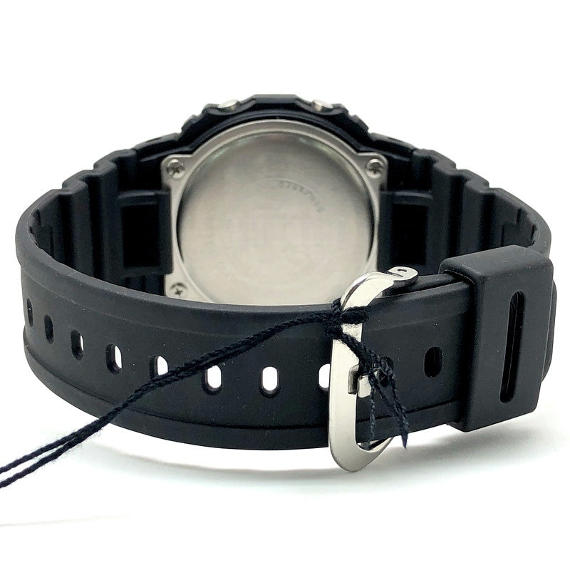 | コメント | 2003年9月に、1978年にタイトーが開発した世界的ブームを巻き起こした大ヒットアーケードゲーム「スペースインベーダー」の誕生25周年を記念して発売されたコラボレーションモデル第1弾。ベースにはスクエアモデルの定番DW-5600が採用され、ベルトとベゼルはスタンダードなブラックを採用し、アクセントカラーにロゴにパープル、ダイヤルにイエローが配色されています。ベルトにはカニやのUFOがデザインされ、裏蓋にはキャラクターのカニとロゴが刻印されています。バックライト発光時にも「カニ」が浮かび上がります。限定1000本のシリアルナンバー入り。 |