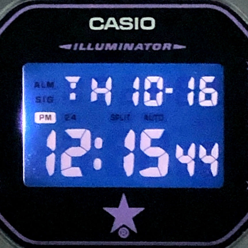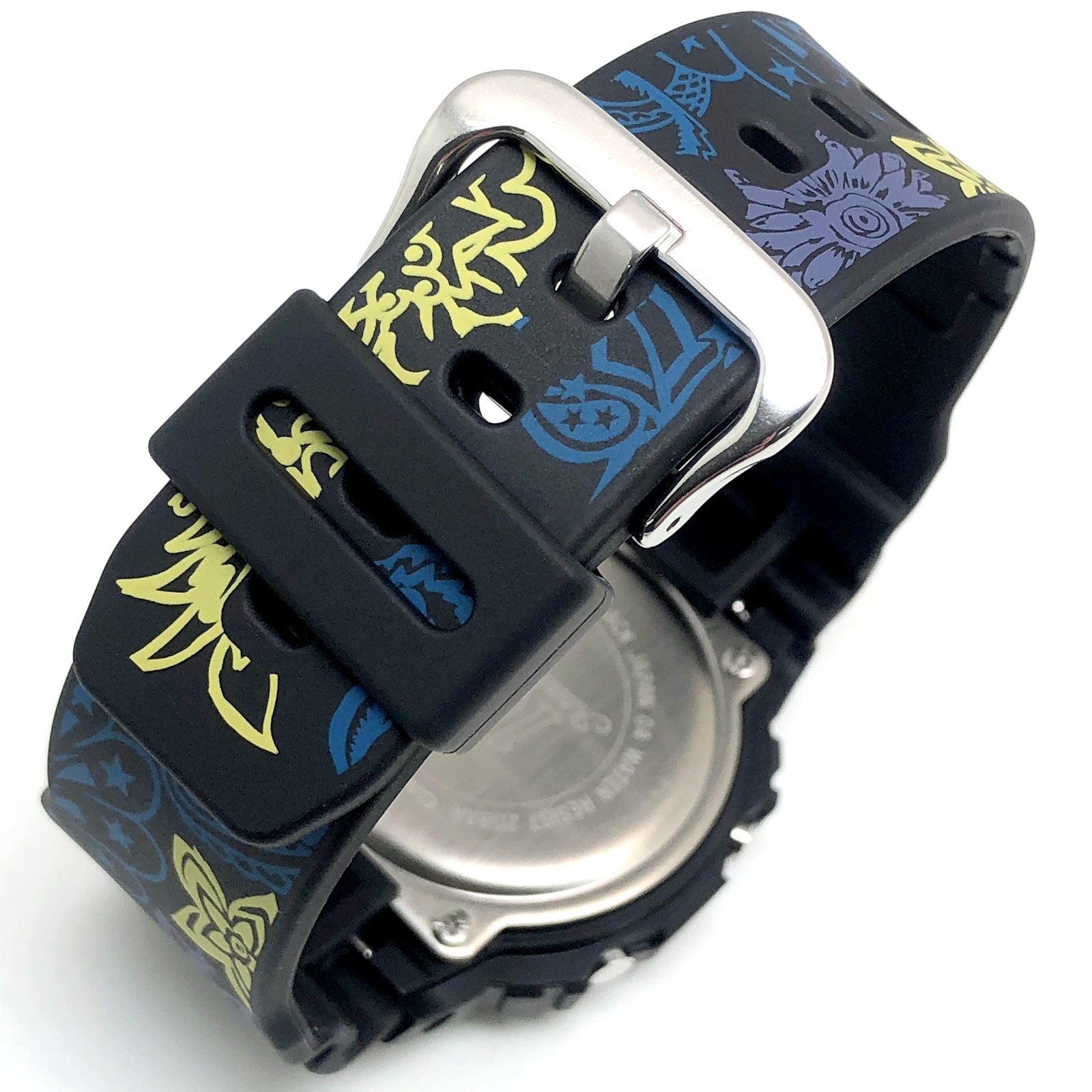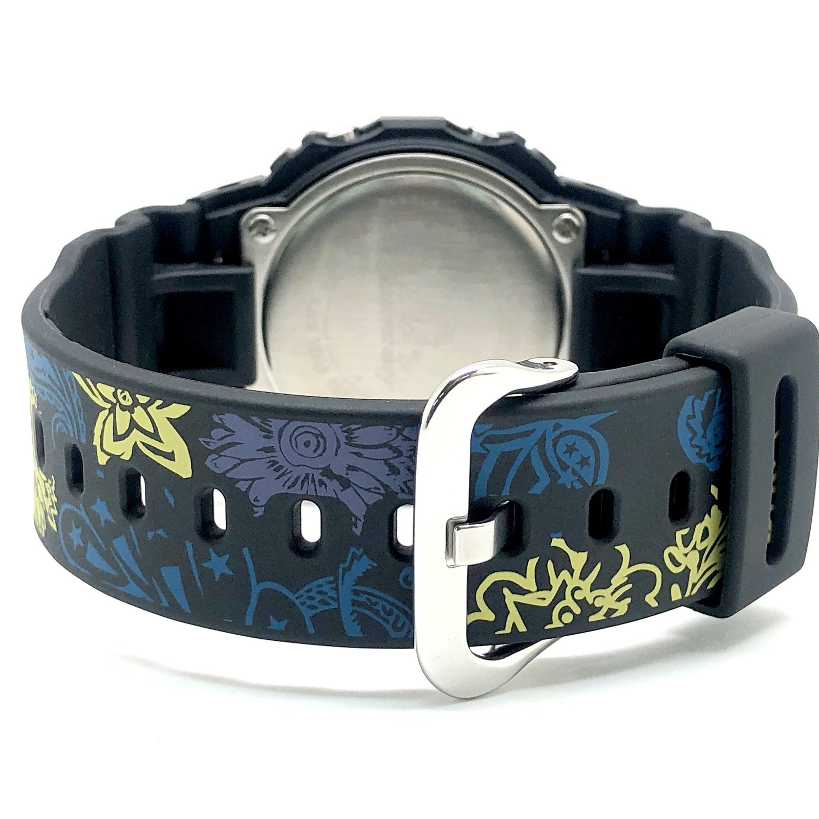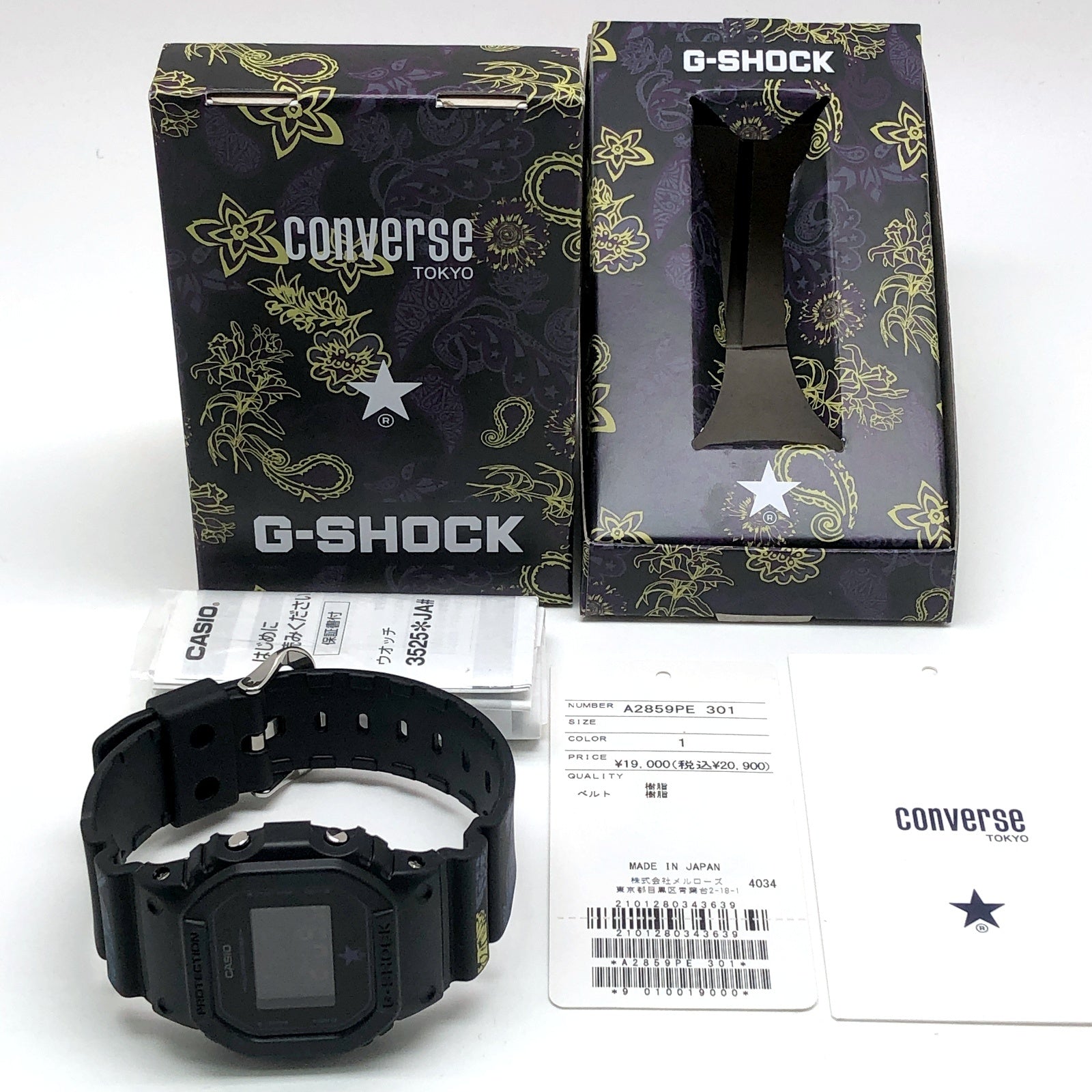 | コメント | 100年以上の歴史を持つCONVERSEから生まれた、日本独自のブランド「CONVERSE TOKYO(コンバーストウキョウ)」の10周年を記念して、2025年9月に発売されたコラボレーションモデル。ベースにはスクエアデザインが人気のDW-5600にLEDバックライトが搭載されたDW-5600UE-1を採用。ベゼルとバンドにはマットブラックが、文字盤にはアクセントカラーとしてパープルが配色されており、下部にはスターマークがデザインされています。バンドにはユリ・ルリトウワタ・コスモスなどのペイズリー総柄がペイントされており、裏蓋には10周年を記念したオリジナルロゴが刻印されています。 |