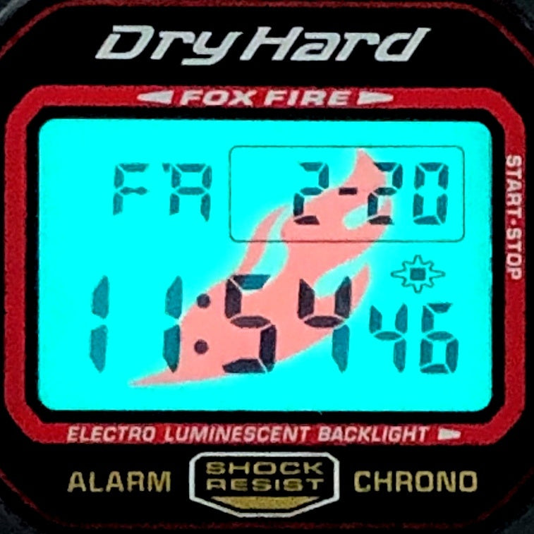 | コメント | アサヒグループ食品が販売する人気ミントタブレット「ミンティア」が2008年に行った「ミンティアショックキャンペーン」の懸賞当選品。ベースにはスクエアデザインが人気のDW-5600を採用。ブラックをベースに、レギュラーシリーズ最強レベルの刺激を誇る強力ミントタブレット「DryHard」をモチーフにデザインされています。文字盤上部にはロゴが配置され、バンドには「MINTIA」の文字がプリントされています。裏蓋にはキャンペーンロゴが刻印され、ELバックライト発光時には、ドライハードのパッケージにも使用されているファイヤーモチーフが浮かび上がります。 |