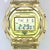 | コメント | 2018年9月にGショック誕生35周年を記念して発売された「GLACIER GOLD(グレイシアゴールド)」。ベースはスティングの愛称で人気の「DW-5700」が採用され、ステンレスケースにスクリューバックの仕様です。ベゼルとバンドにはクリアスケルトンを採用し、ケースと裏蓋にはゴールドIP処理が施されています。さらに文字盤やサイドボタン、遊環や尾錠もゴールドで仕上げられています。裏蓋には35周年の記念ロゴが刻印されています。 |