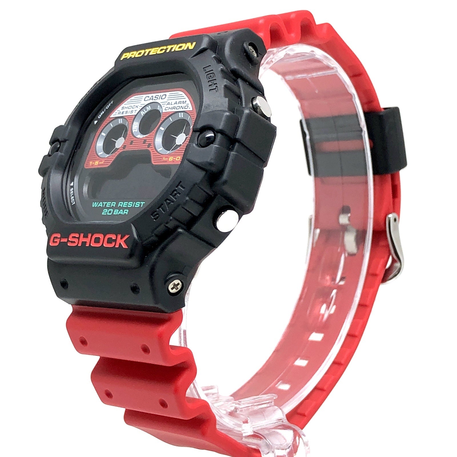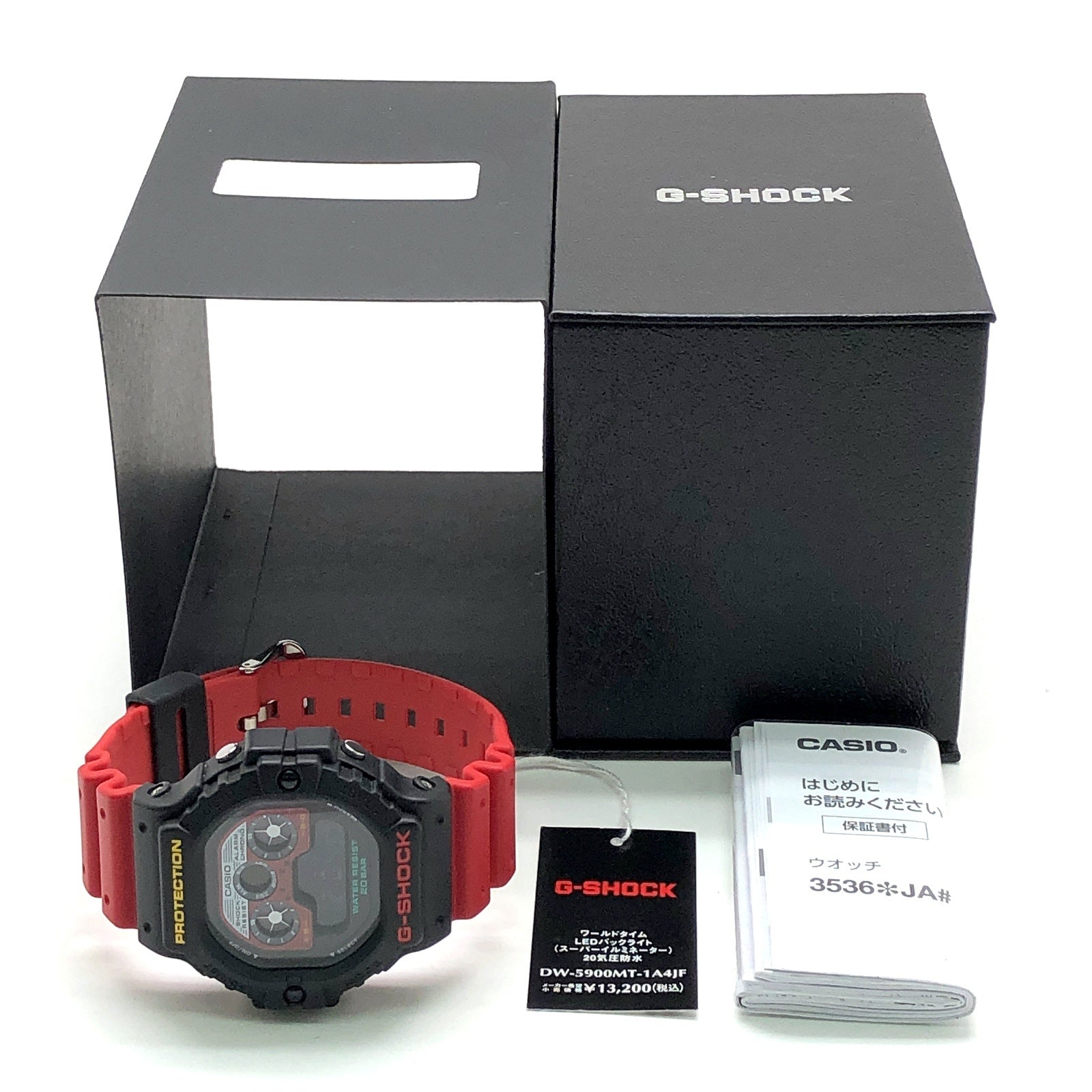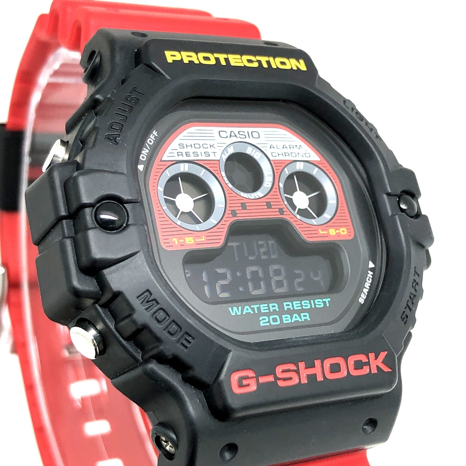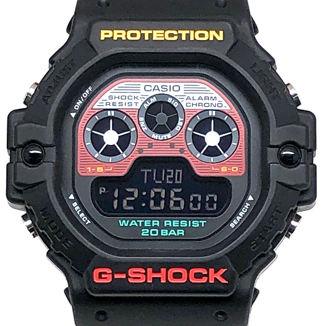 | コメント | 2023年12月に発売された、カラフルなカセットテープをモチーフにした「Mix Tape Series(ミックステープシリーズ)」です。ベースにはG-SHOCK初の3つ目グラフィックが搭載され、2018年に復活したDW-5900を採用。ベゼルにはスタンダードなブラック、バンドにはG-SHOCKのブランドカラーであるレッドが配色されています。文字盤と遊環には遊び心が溢れるカセットテープがデザインされています。 |