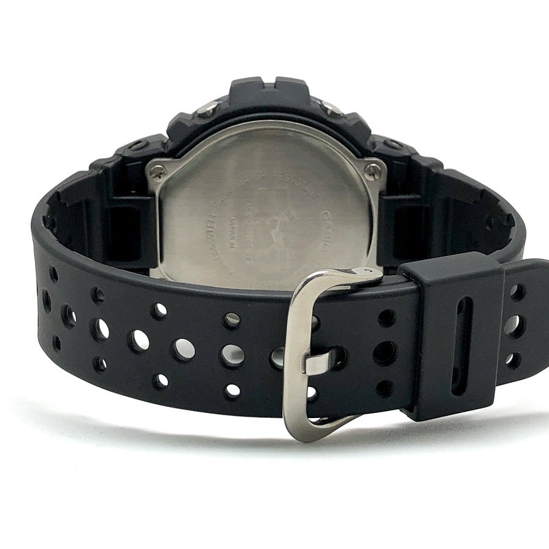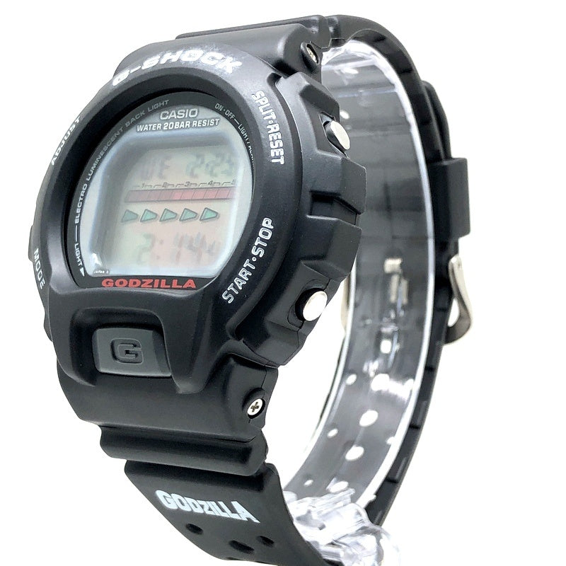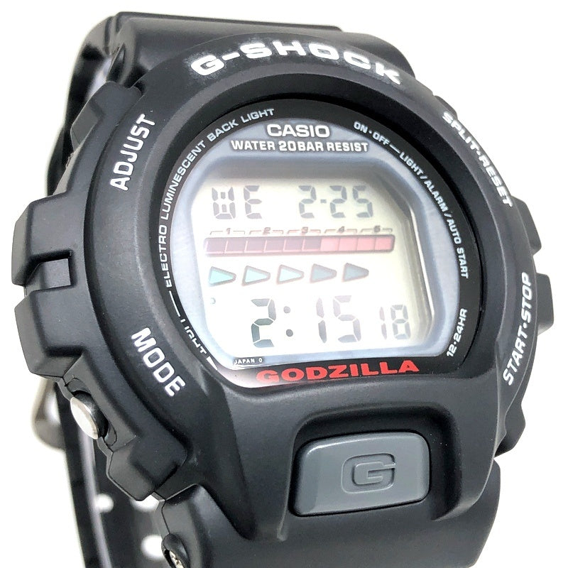 | コメント | 2001年11月3日に発売された、日本を代表する映画会社「東宝」が1954年に公開した特撮怪獣映画に登場する架空の怪獣「ゴジラ」とのコラボレーションモデル「Gの衝撃-ゴジラプレミアムコレクションズ2001-」です。ベースにはG-SHOCKで初めてELバックライトが搭載されたDW-6600を採用。スタンダードなブラックを基調に、バンドには「GODZILLA」と「King of the Monsters」の文字が、文字盤下部には赤色で「GODZILLA」の文字がプリントされています。裏蓋には「ゴジラ」のカタカナロゴが刻印されており、ELバックライト発光時には初代ゴジラの赤いシルエットが浮かび上がります。完品のセット内容はG-SHOCK・ソフビ・CD・パンフレットで、限定1000セットが発売された。 |