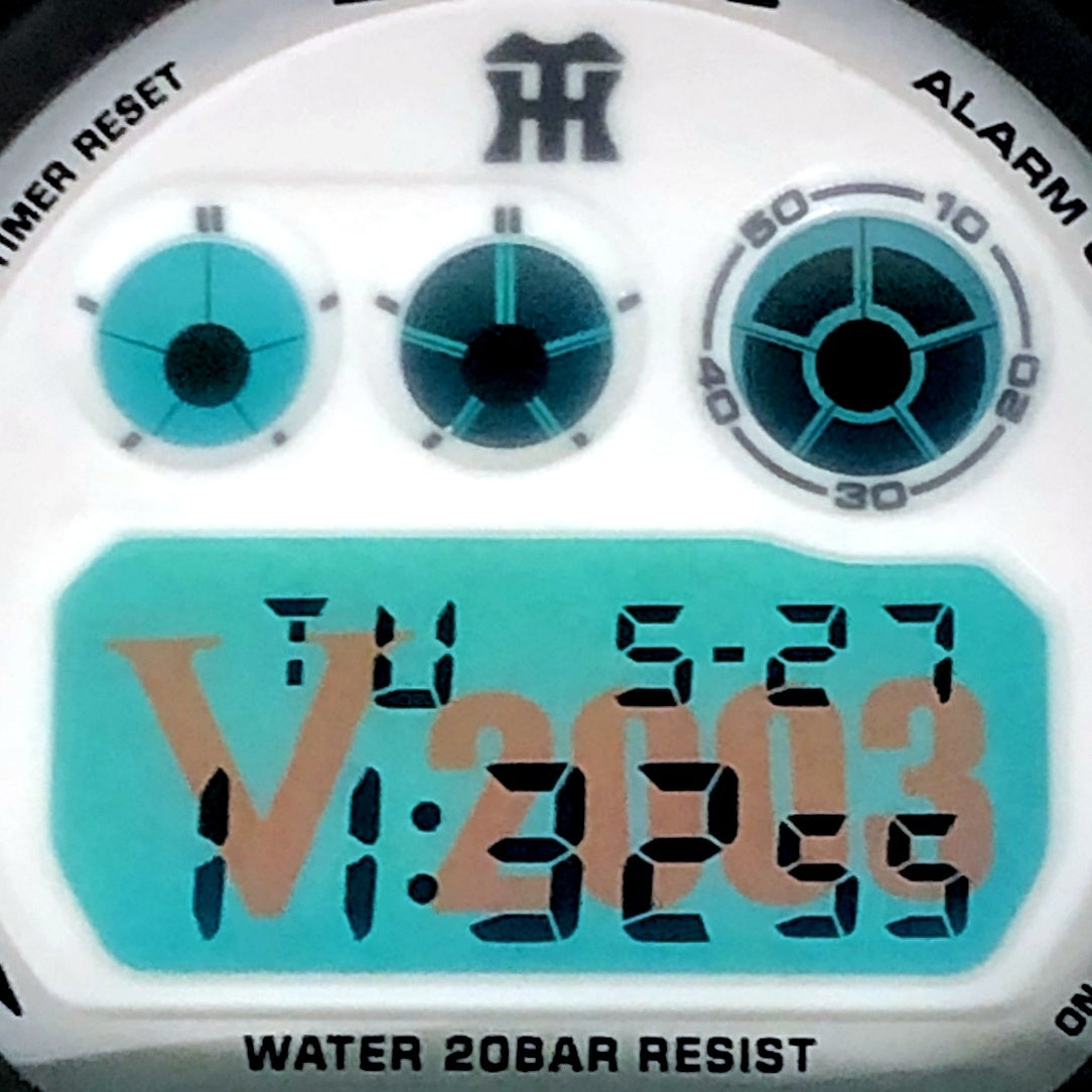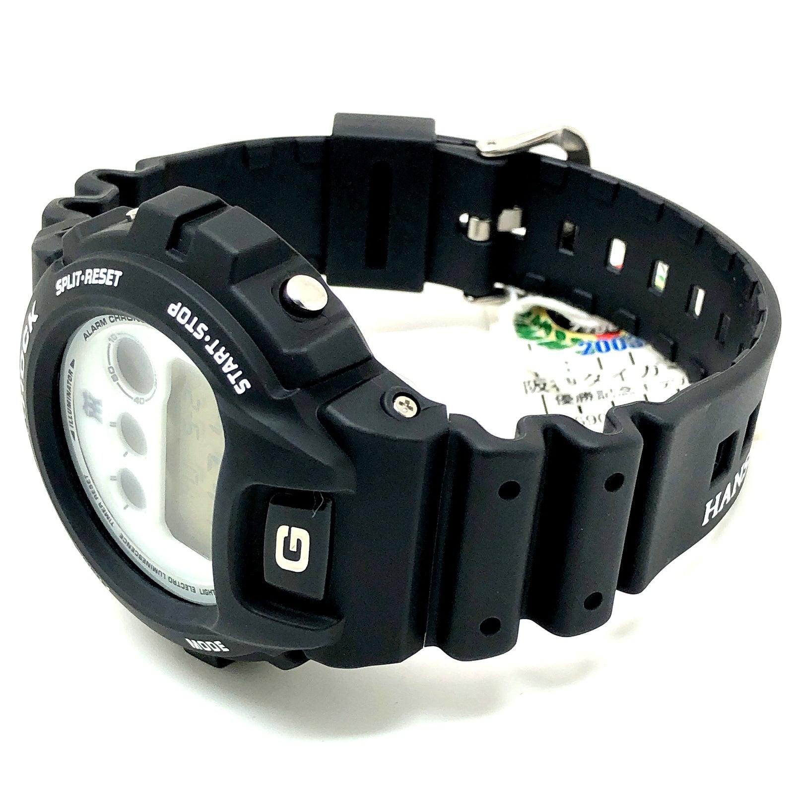 コメント | 2003年12月に、日本のセ・リーグに所属するプロ野球球団「阪神タイガース」の優勝を記念して発売されたコラボレーションモデル。ベースにはコラボモデルの定番DW-6900を採用し、スタンダードなブラックでデザインされています。ホワイトが採用されたダイヤルの上部にはタイガースのロゴマークが配置され、バンドには「HANSHIN Tigers」のロゴと優勝記念のエンブレムがプリントされています。裏蓋にも同様のエンブレムが刻印され、ELバックライト発光時には「V2003」の文字が浮かび上がります。 ※こちらは希少な機能エラー品どなっており、ストップウォッチ機能時にSPLIT-RESETボタンが使用できない仕様です(ADJUSTボタンを使用)。 |