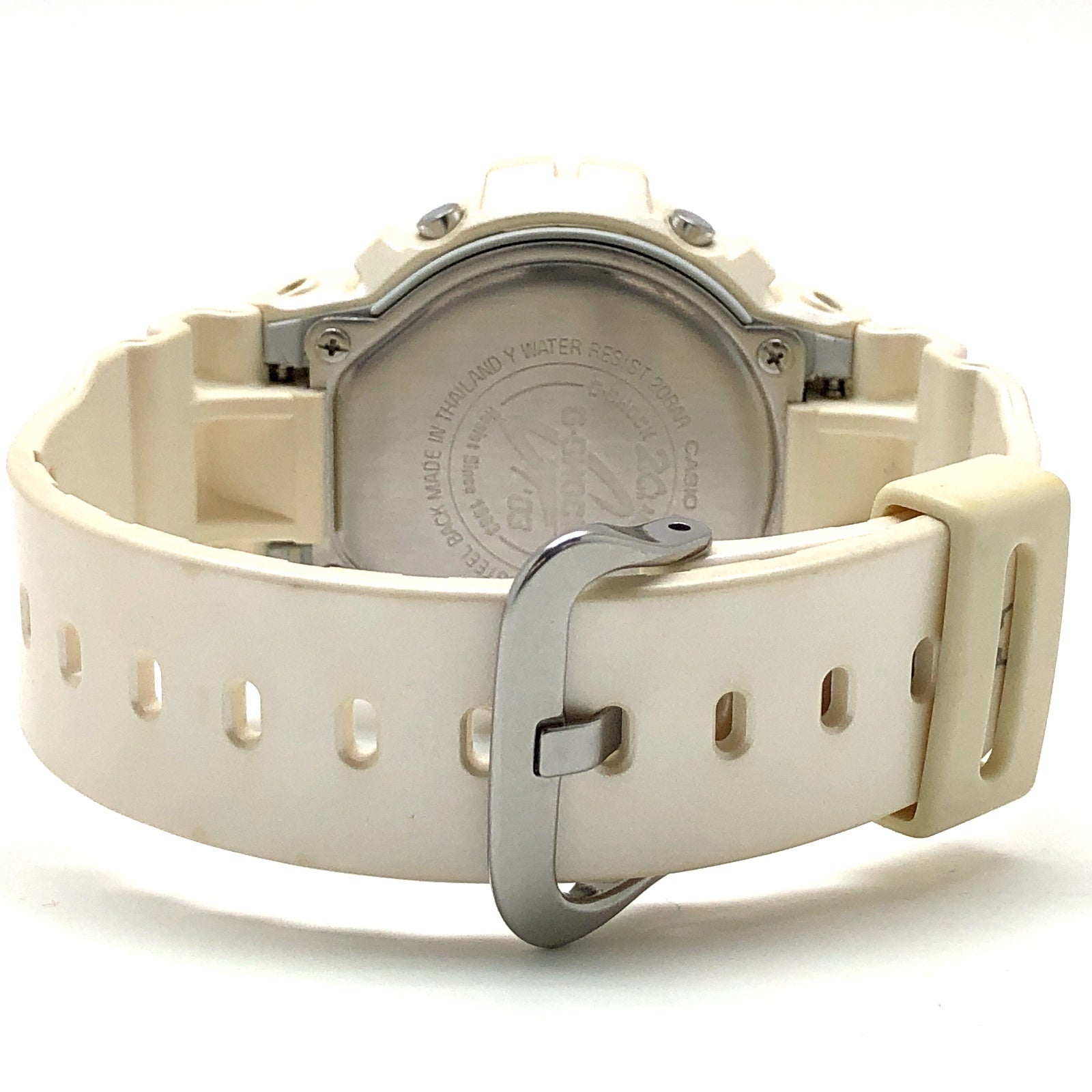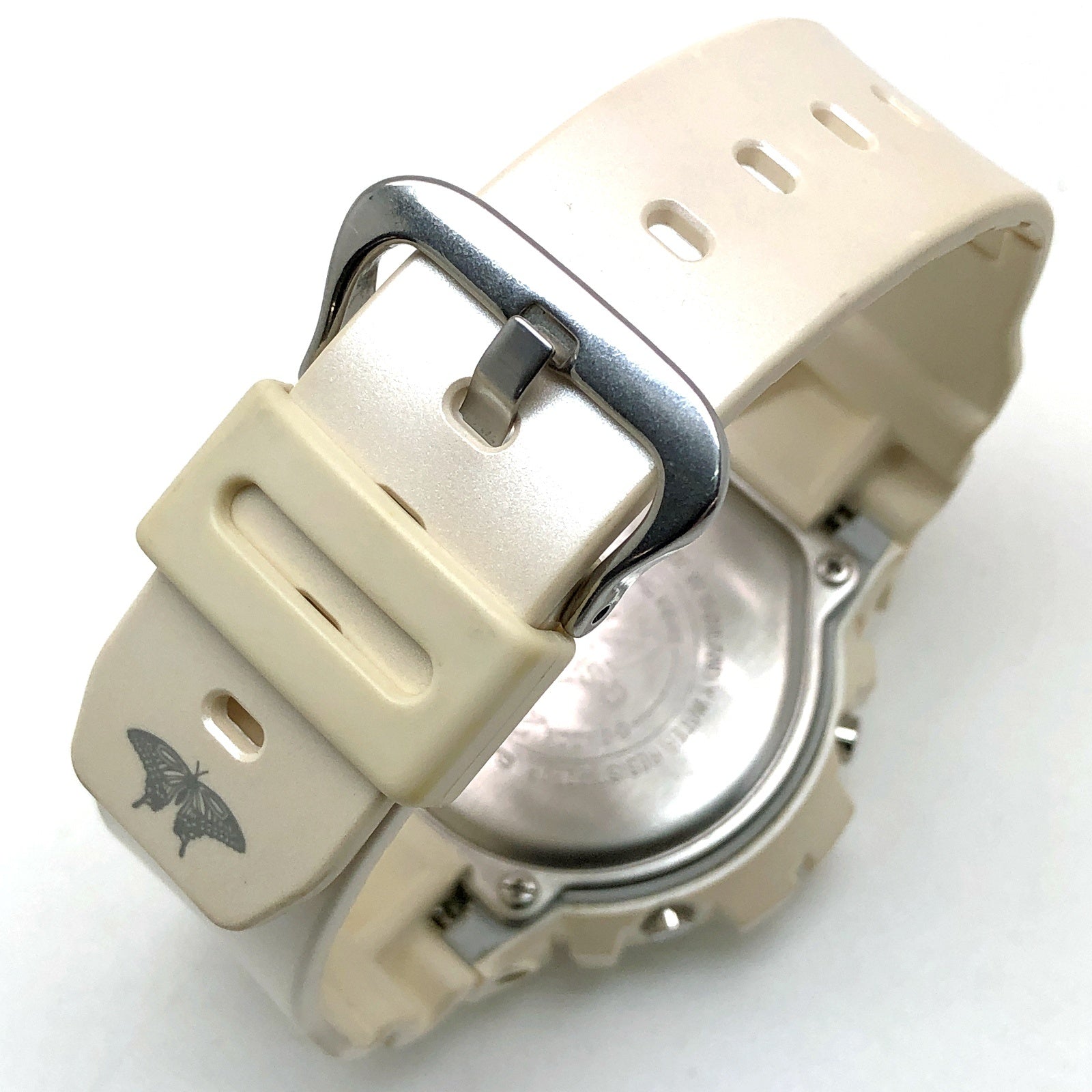 コメント | 2003年11月に発売された、毎年クリスマス限定ペアウォッチとして人気の「G Present’s Lover’s Collection(ジープレゼンツラバーズコレクション)」の単品モデル(ペアLOV-03B-7)です。2003年はバタフライがモチーフとなっており、バンドには自由に空を飛び回る蝶がデザインされています。ベースにはコラボモデルの定番DW-6900が採用され、ベゼルとバンドにはホワイトパール塗装が施されています。裏蓋には20周年記念の刻印されています。 |