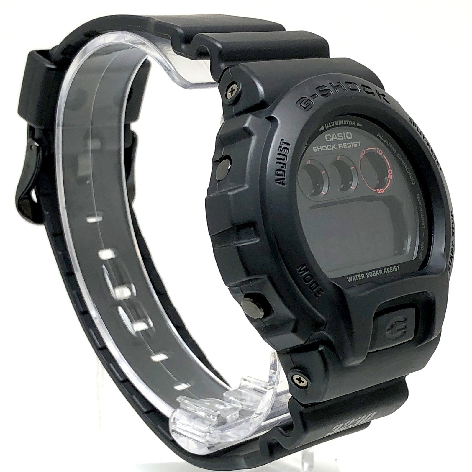 コメント | 2009年2月に発売された「MAT BLACK RED EYE(マットブラックレッドアイ)」です。ベゼルとバンド漆黒の闇をテーマに、マットブラックで仕上げられており、液晶には赤色の反転液晶が採用されています。バンドにはモジュールナンバーである「3230」がステンシル文字でプリントされています。 |