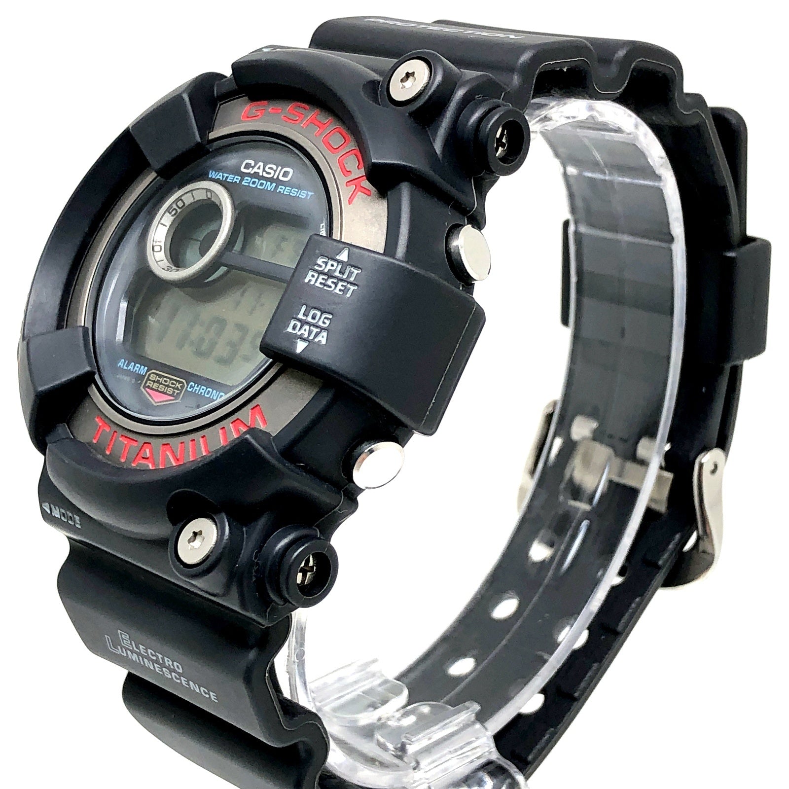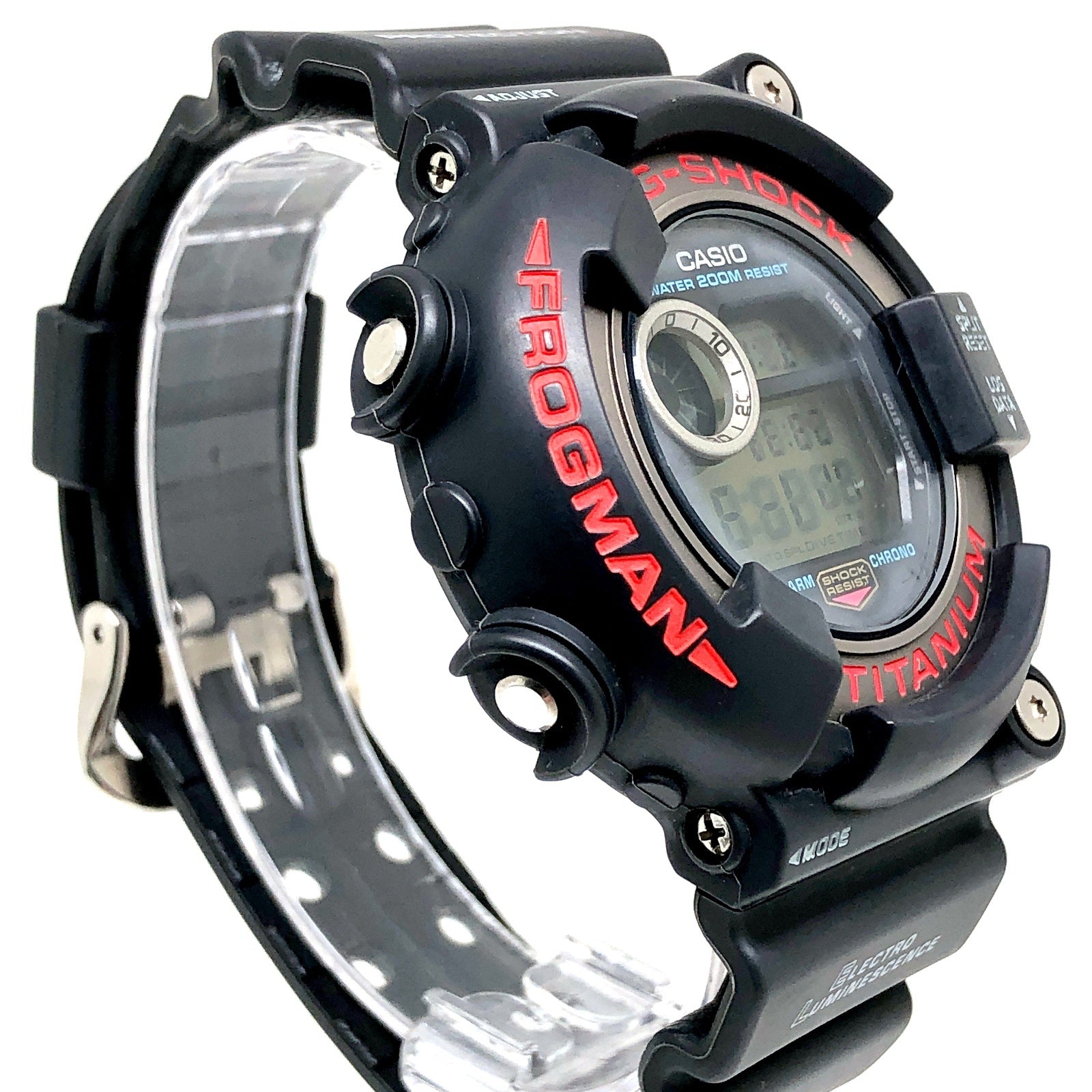 | コメント | 1995年6月に発売された、2代目FROGMAN(フロッグマン)のファーストモデル。ケースには軽量で錆びに強いチタン素材を採用し、ELバックライトが搭載されました。ベゼルとバンドにはダークグレーが採用され、ロゴにはG-SHOCKのブランドカラーであるレッドが配色されています。裏蓋には潜水蛙が刻印されています。 |
