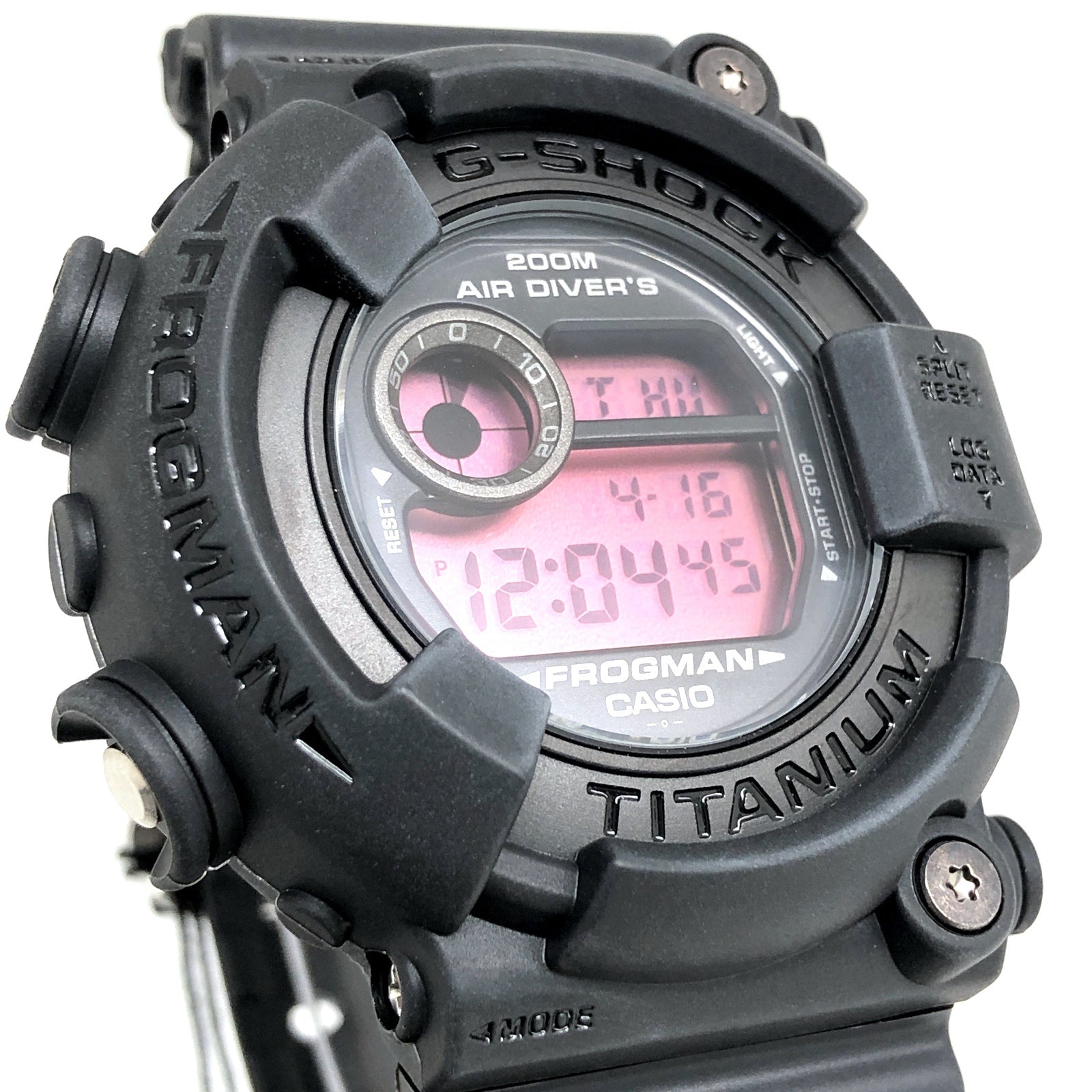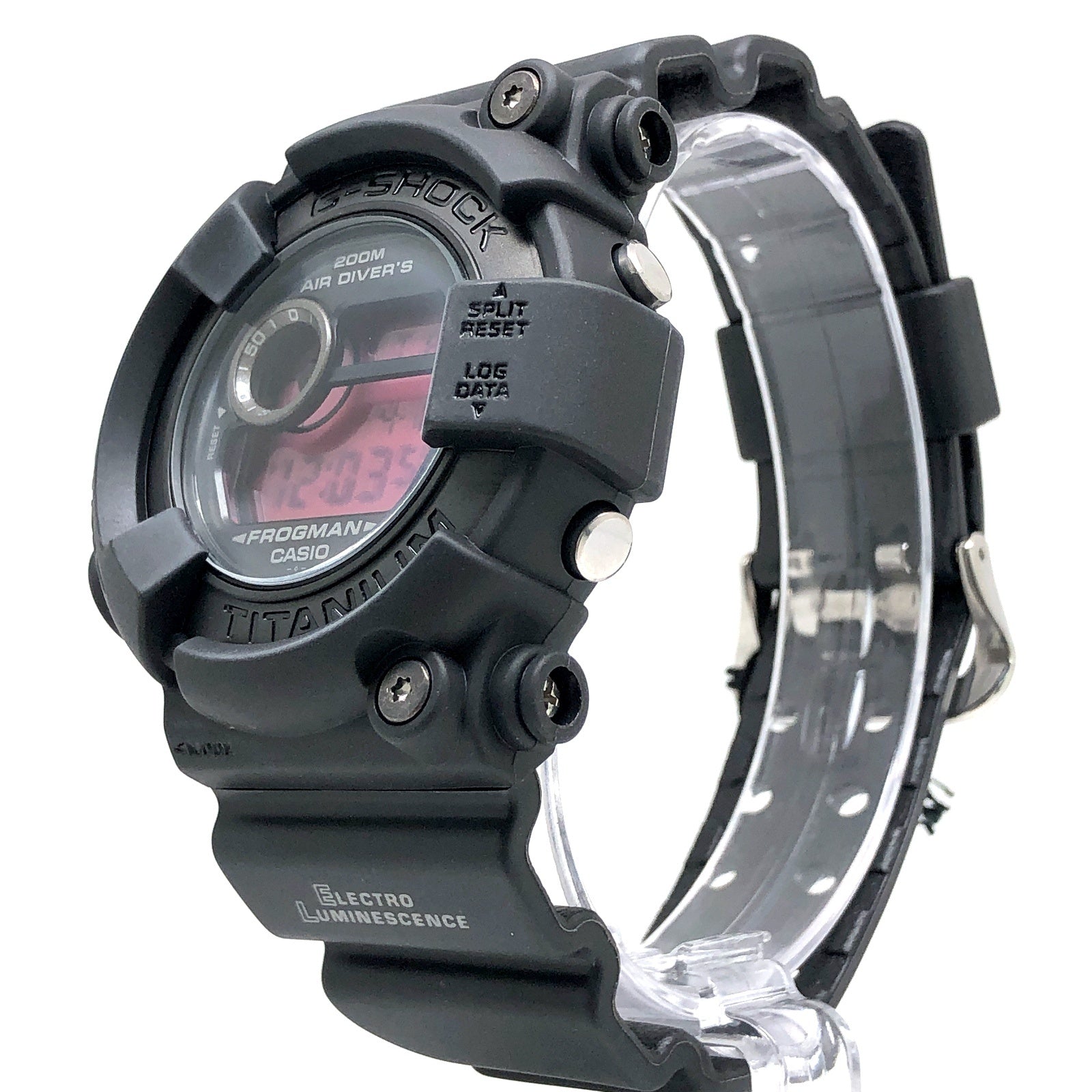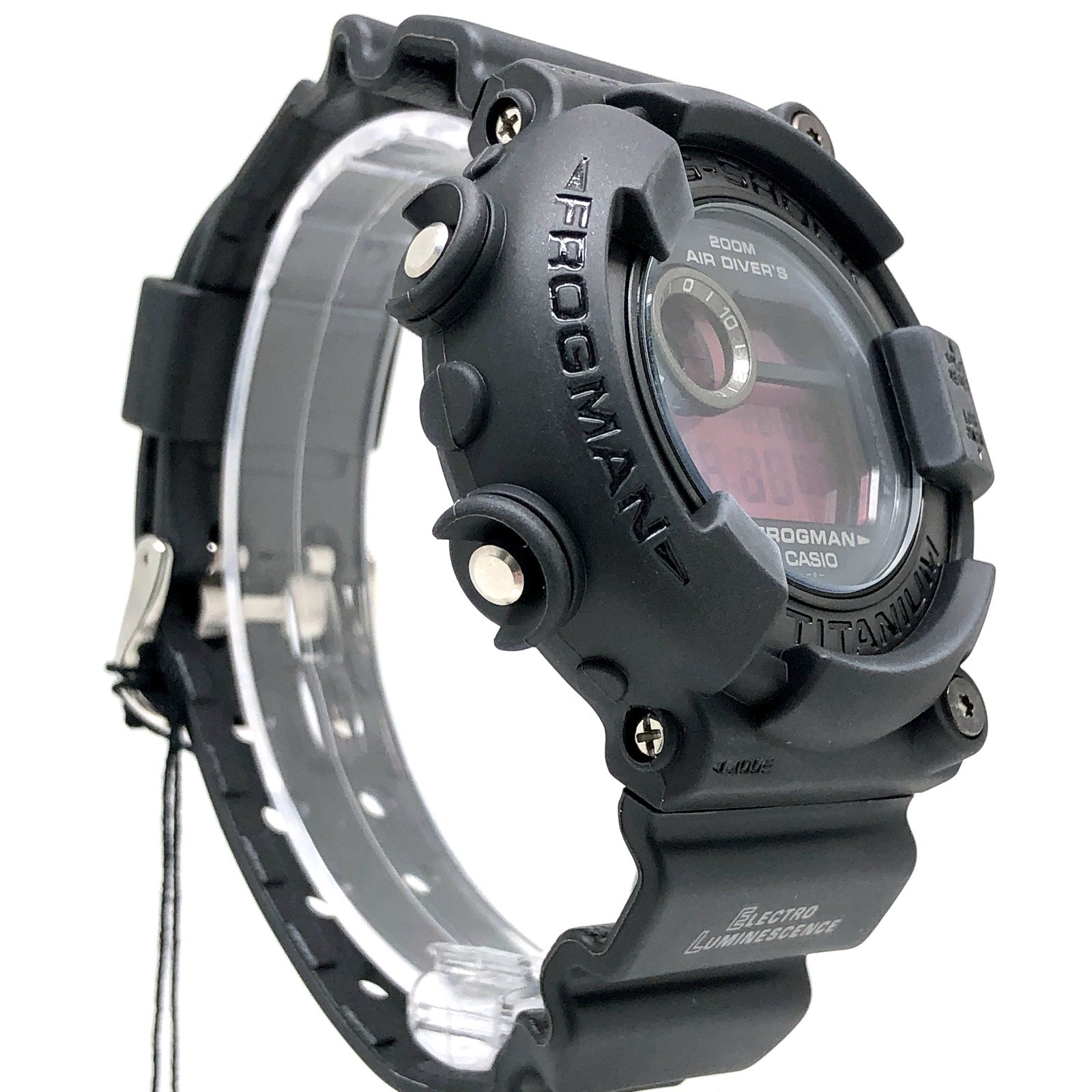 | コメント | 2000年11月に発売された、黒にこだわったカラーテーマモデル「REAL BLACK(リアルブラック)」のFROGMAN(フロッグマン)。ベゼルとベルトにはマットな質感のブラックが配色され、ロゴには光沢のあるブラックが採用されています。液晶にはアクセントカラーとして、レッドのクリア液晶が採用されています。裏蓋には潜水蛙が刻印されています。 |
