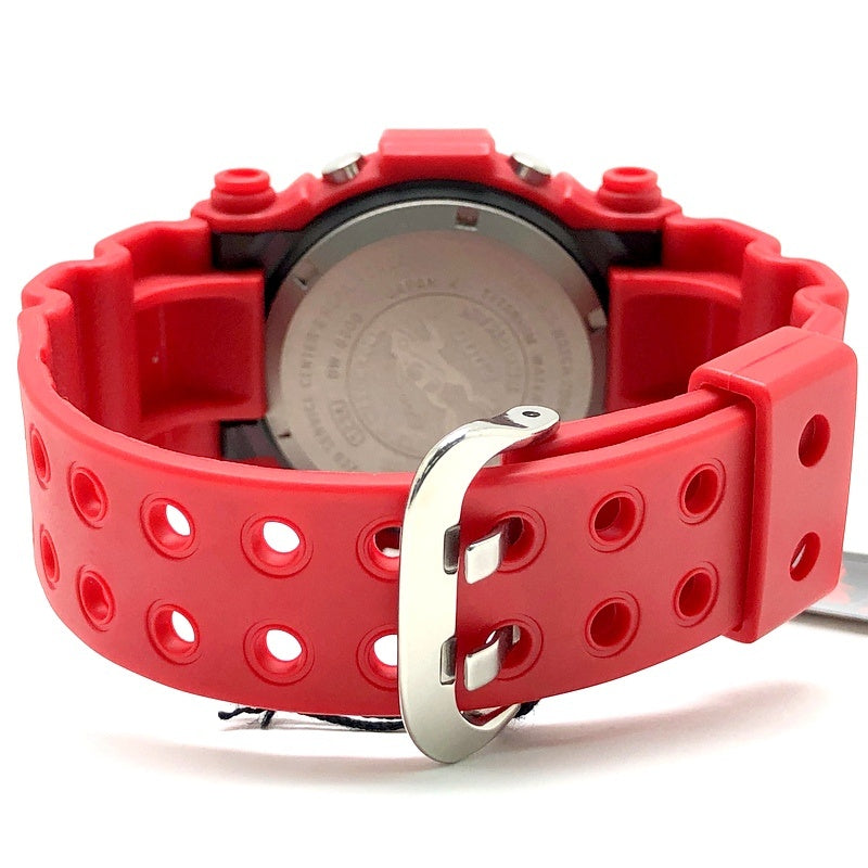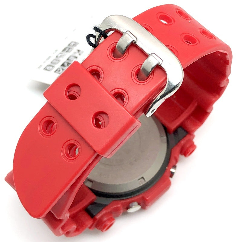 コメント | 2000年7月に、G-SHOCKの情報を発信するインターネットのサイト「G-FACTORY(ジーファクトリー)」の開設を記念して発売された「FROGMAN 2000」。G-SHOCKのテーマカラーである「赤」をフィーチャーした西暦2000年特別仕様となっており、ベゼルとバンドには「赤」を配色し、液晶のグラフ表示部のみの赤液晶が採用されています。裏蓋には潜水蛙と「2000」の文字が刻印され、ELバックライト発光時にも同様の潜水蛙が浮かび上がります。 |