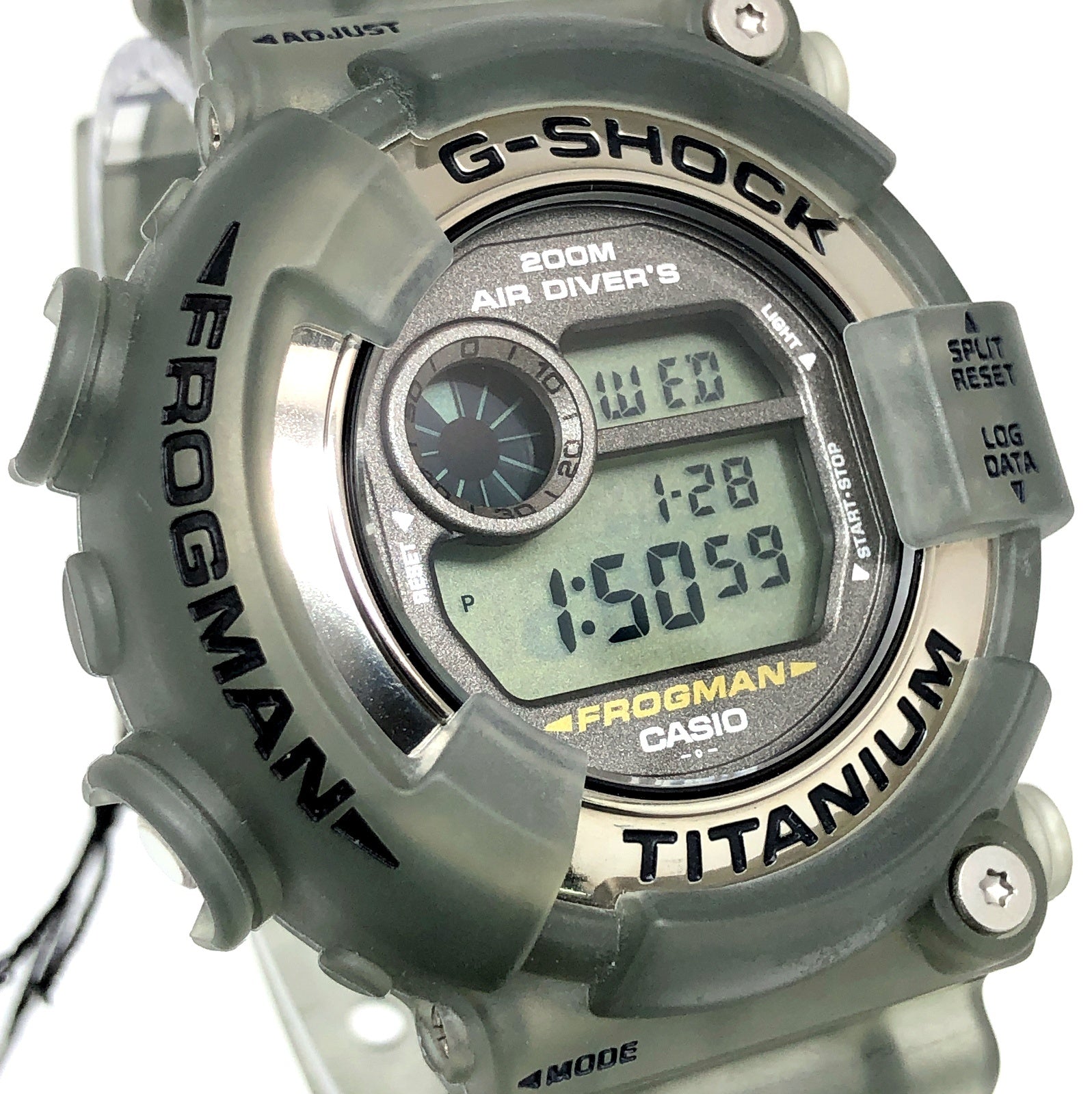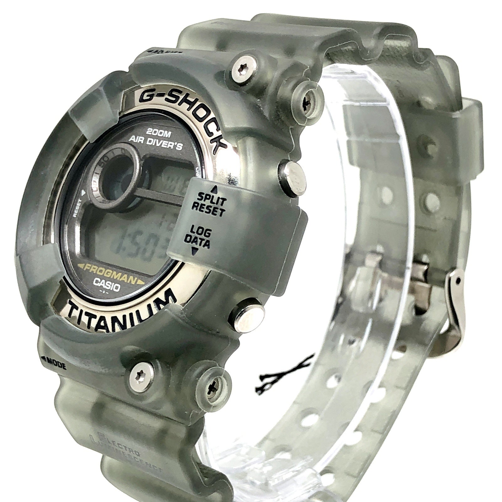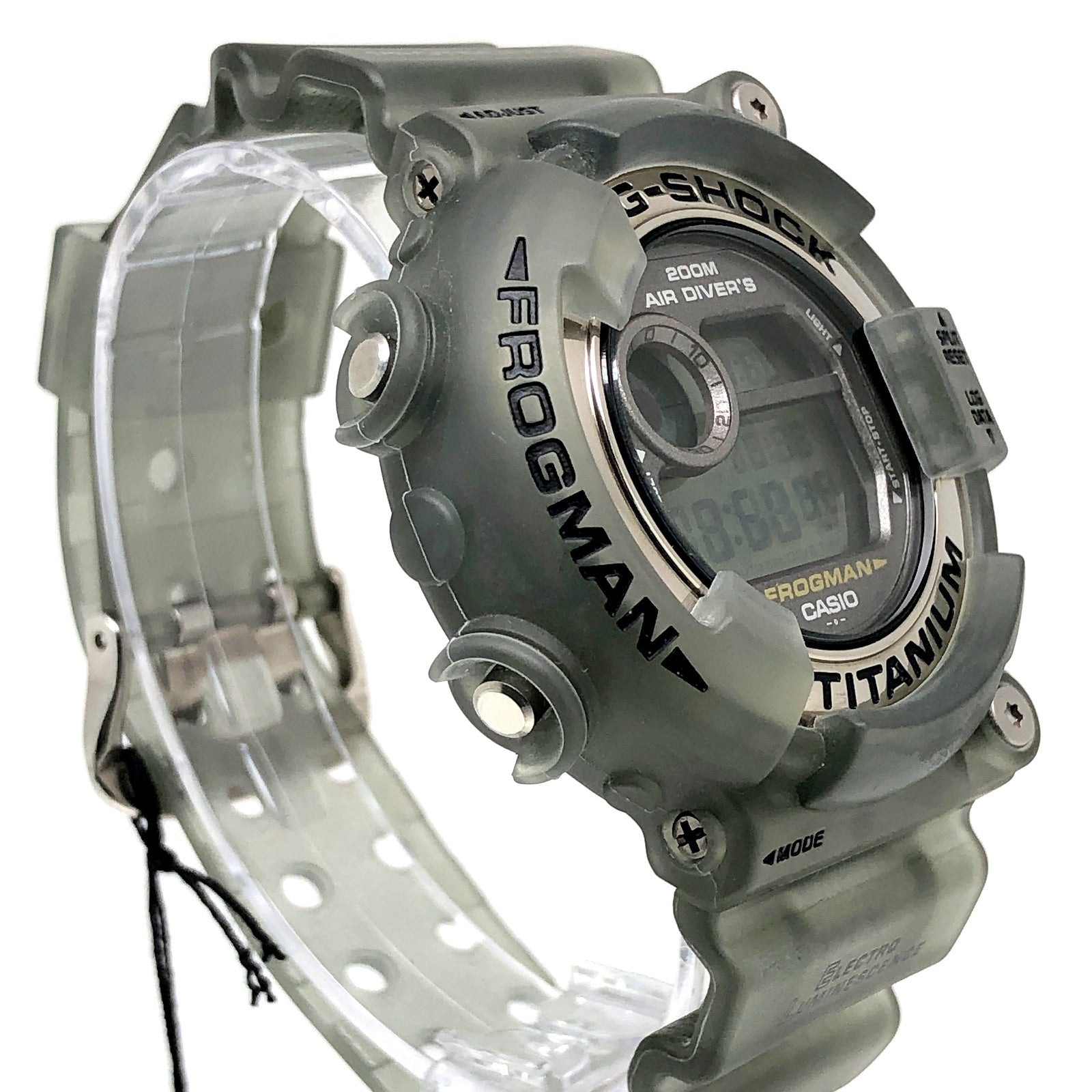 | コメント | 働く男「MAN SERIES(マンシリーズ)」の第3弾として1998年9月に発売された「MEN IN SMOKE(メンインスモーク)」のFROGMAN(フロッグマン)です。ベゼルとバンドにはグレーのスケルトン樹脂が採用され、ケースにはサビに強いチタン素材が使用されています。裏蓋には潜水蛙が刻印され、ELバックライト発光時には蛙が浮かび上がります。 |