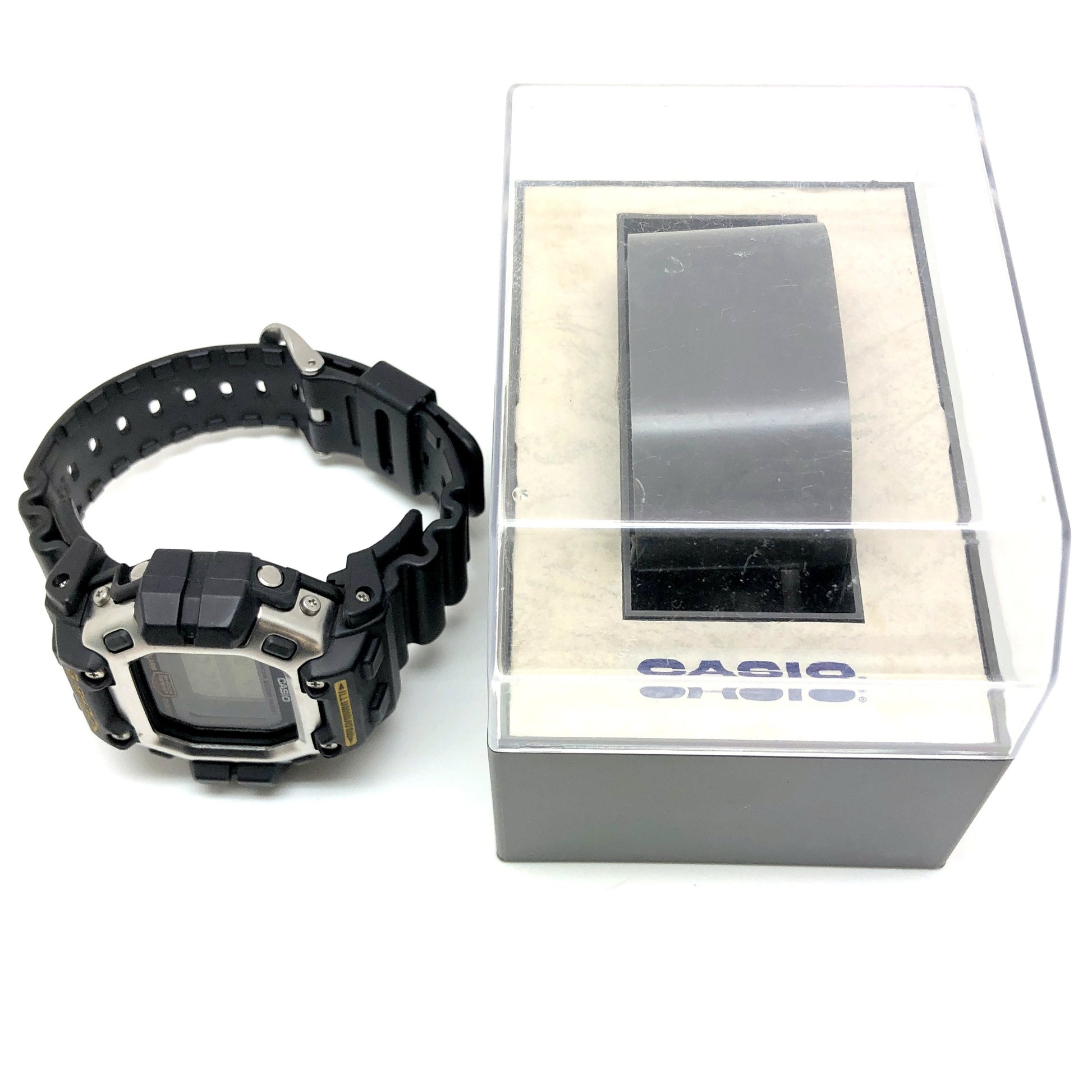 状態詳細 | ベルトやベゼルに小傷や色むらなどが見られますが、使用感の少ない商品です。※ELバックライト点灯不良。 付属品:ケース 現在、加水分解の兆候は見られませんが、強い衝撃や保管状況等により加水分解が起こる可能性が充分にございます。あらかじめご了承の上ご検討ください。あくまでコレクション・観賞用としてご購入ください。 ※ヴィンテージG-SHOCKにご理解のある方のみご検討ください。購入後に強く曲げたりなどで劣化・破損した場合でも保障はいたしかねます。 ※出品中や配送途中に状態が悪化(割れの進行や新たな割れの発生など)する場合がございます。 |