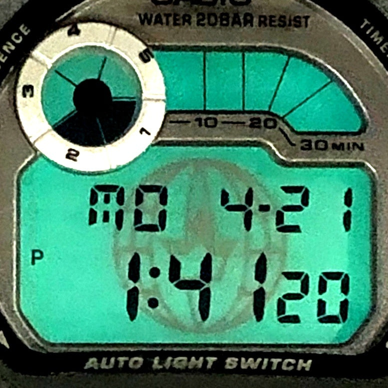 コメント | 1997年5月に、ハワイの伝統的なサーフィンの世界大会である「Triple Crown of Surfing(トリプルクラウン)」の第2戦目にあたるワールドカップのスポンサード記念に発売された限定モデル。ベースにはサーフィンをはじめとするアクティブなスポーツをサポートする「X-tream(エクストリーム)」シリーズのDW-9000を採用。シルバー、ガンメタリック、ネイビーの3モデルが発売され、バンドには第2大会名「Triple Crown of Surfing G-SHOCK World Cup」と開催地の「NORTH SHORE, HAWAII」の文字が、遊環には大会のロゴがプリントされています。裏蓋にもロゴが刻印され、ELバックライト発光時にも同様のロゴが浮かび上がります。 |