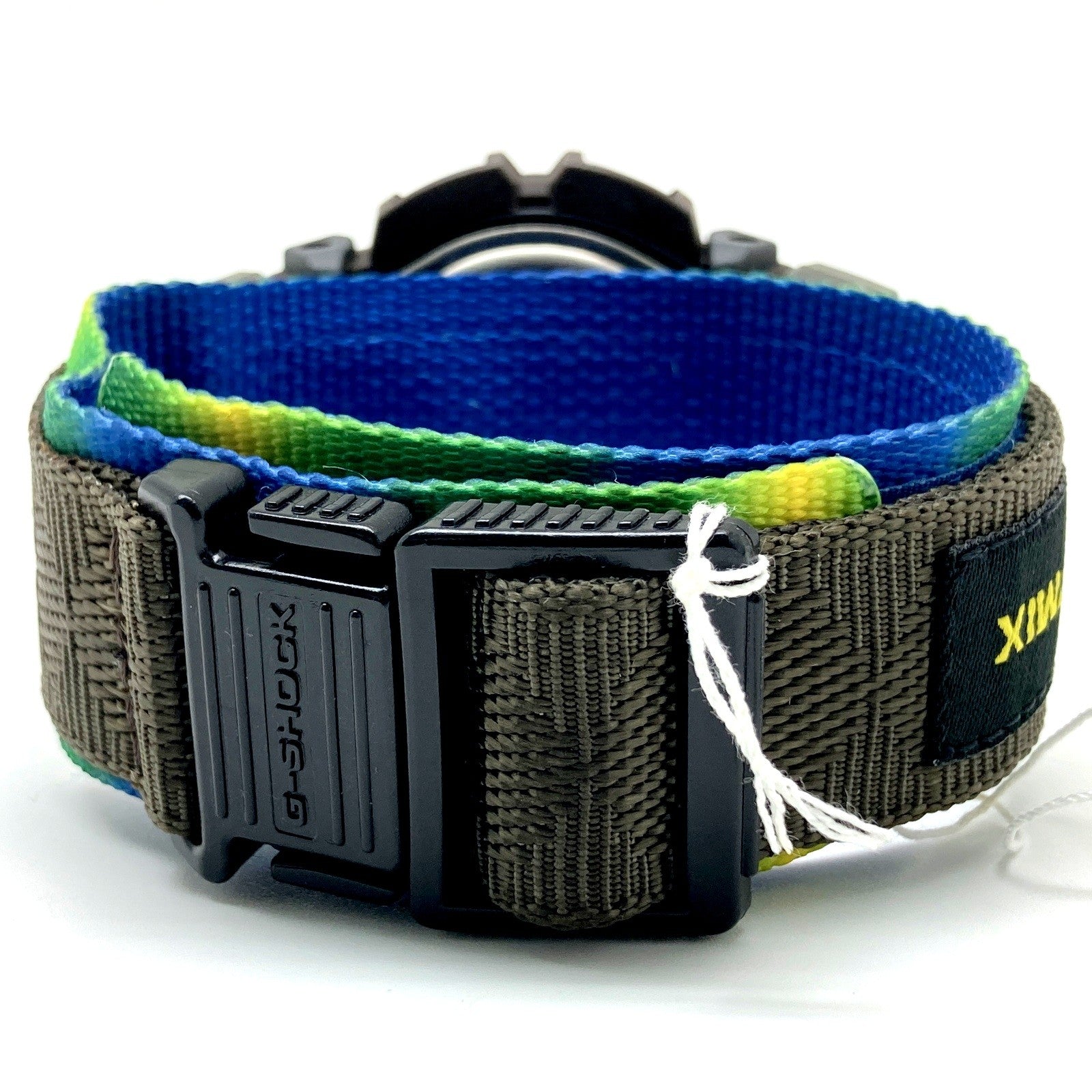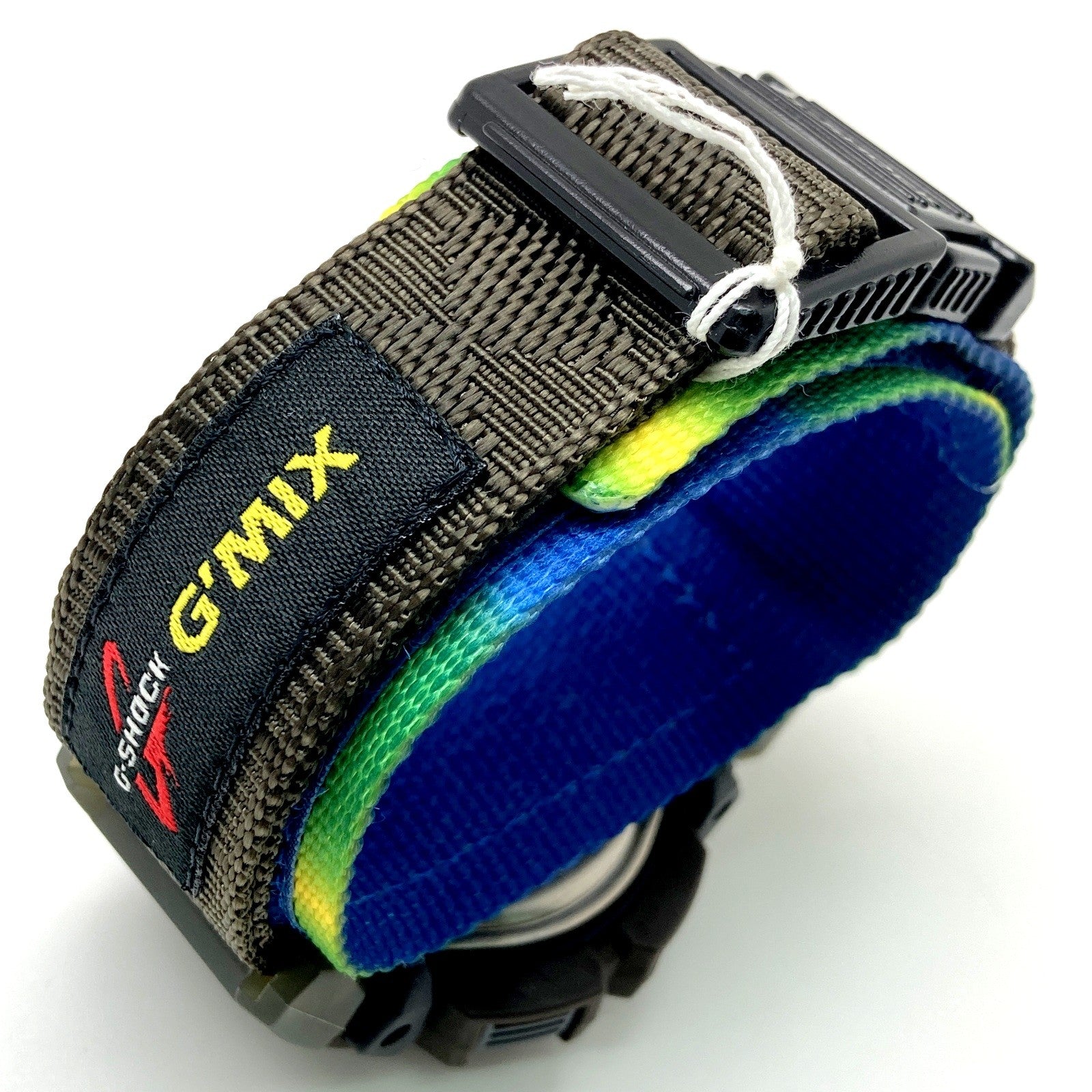 コメント | 1998年7月に発売された、ブラジリアンミュージックをテーマにした「G'MIX BRAZILIAN MIX(ジーミックス ブラジリアンミックス)」。ベースにはBPMカウンター(Beats Per Minute)機能が搭載されたDW-9500を採用され、美しい海岸と広大な自然を持ち、陽気で情熱的かつ熱狂的な国民性のブラジルをテーマに3モデルを発売。DW-9550BN-5Tは、ベゼルとバンドにはブラウンを採用し、下ベルトにはブラジルの国旗をイメージし、ブルー・グリーン・イエローのグラデーションカラーが配色されています。 |