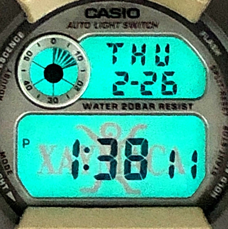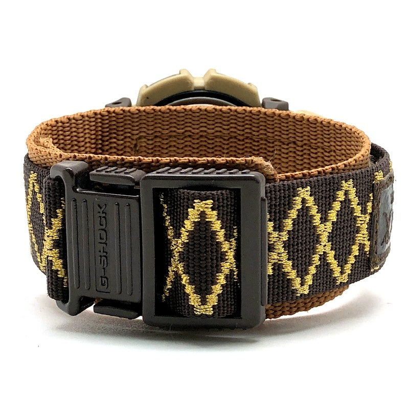 | コメント | 1998年7月に発売された、レゲエミュージックをテーマにした「G’MIX XAYMACA(ジーミックスザイマカ)」の1998年夏モデル。レゲエ発祥の地、ジャマイカの語源(ザイマカ=木と水の大地)をモデルネームに持つ、BPMカウンターを搭載したG-SHOCK。大地の色(アースカラー)をメインカラーに、バンドにはクロスバンドが採用され、ゴールドで刺繍が施されています。ELバックライト発光時には、大地にしっかりと立ち、天を仰ぐザイマカのロゴが浮かび上がります。 |