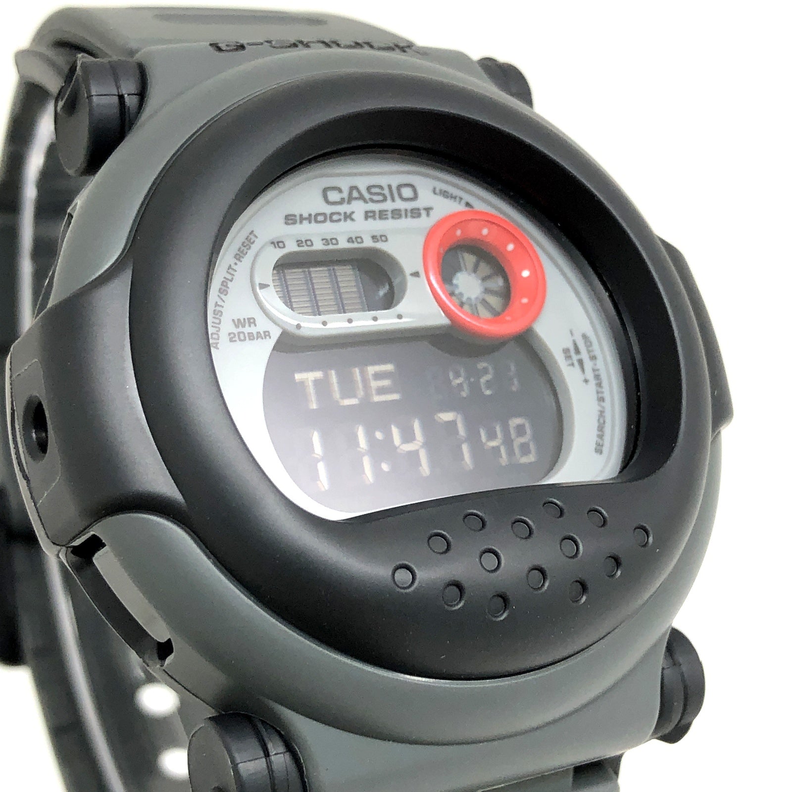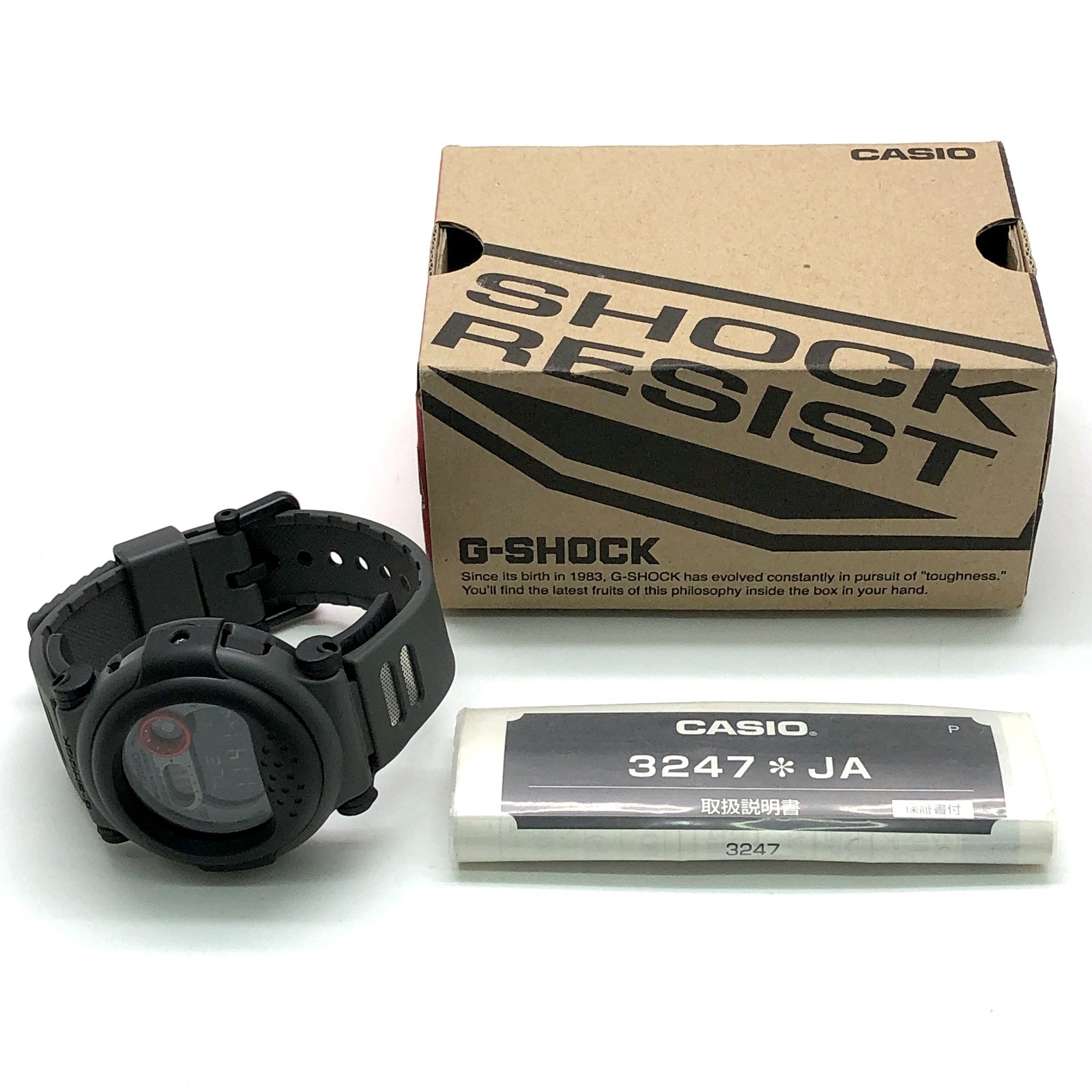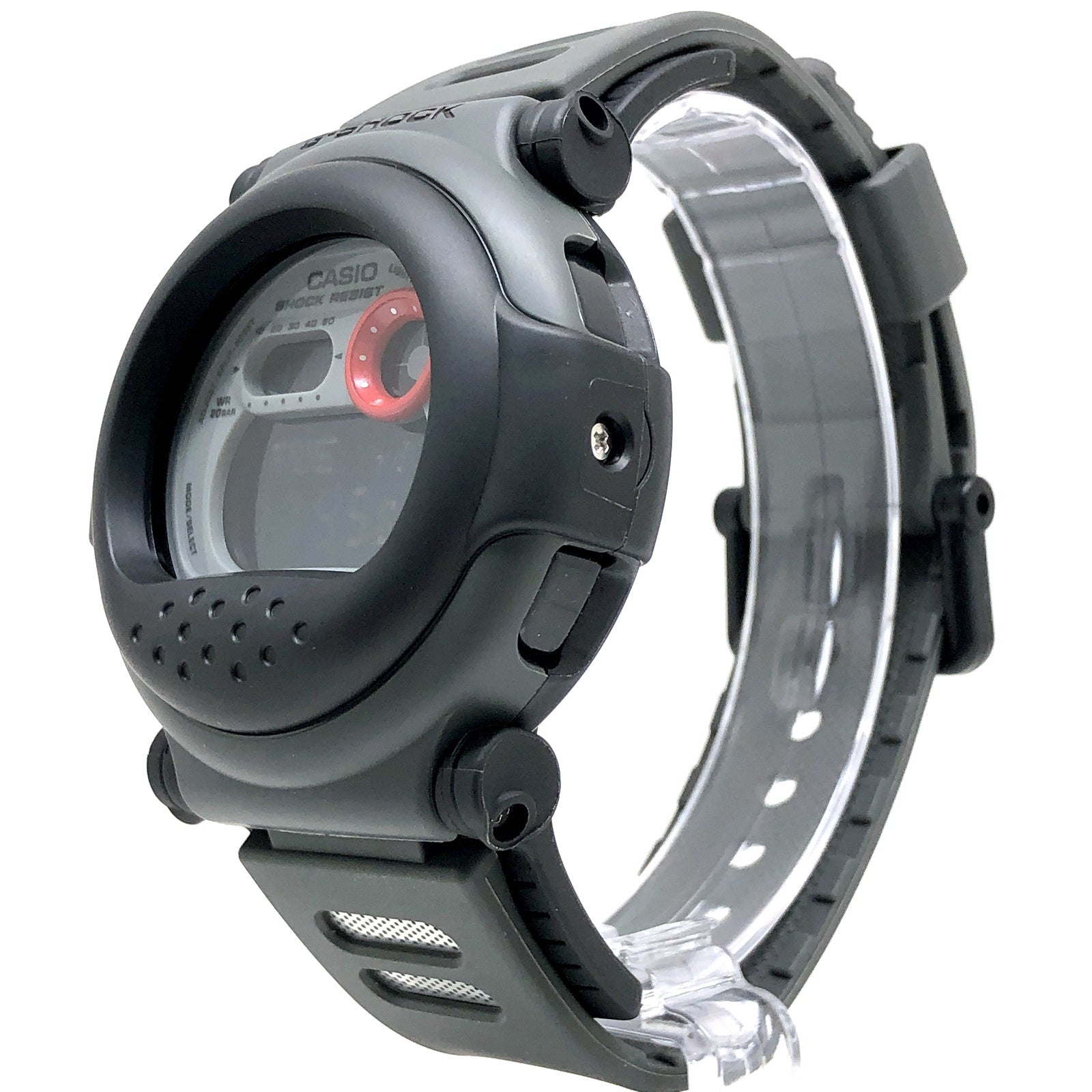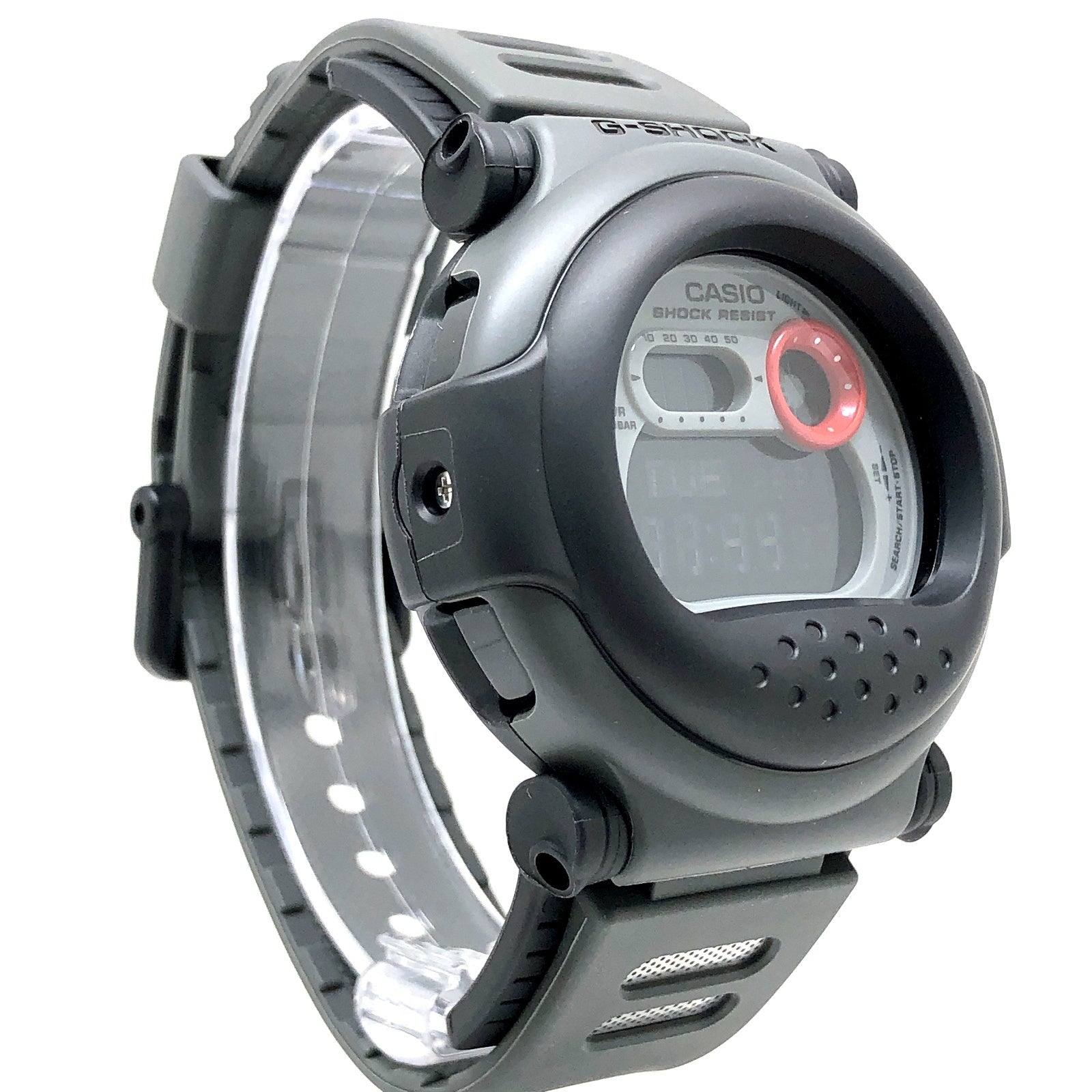 | コメント | 2011年10月に発売された、その個性的なデザインからG-SHOCKファンの間で「ジェイソン」と呼ばれている「001シリーズ」の復刻モデル。カプセルで包み込んだようなデザイン「カプセルタフ」をコンセプトとした「nexax(ネグザクス)」に温度センサーを搭載し、1994年発売にされた「DW-001」が再現されています。アイスホッケーのマスクのようなベゼルが、映画「13日の金曜日」に登場する架空の怪人に似ていたことから「ジェイソン」という愛称で呼ばれるようになり、当時はプレミアム価格で取引されるとても希少なモデルでした。 ※G-001には温度センサーは搭載されていません。 |