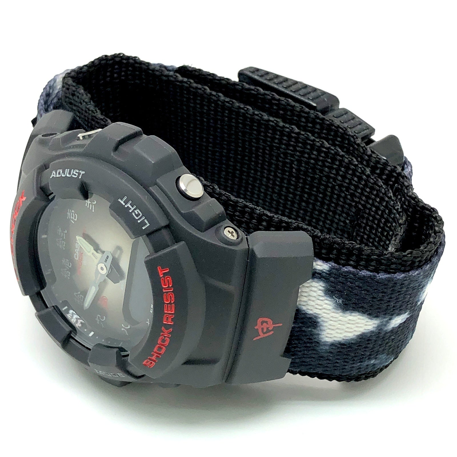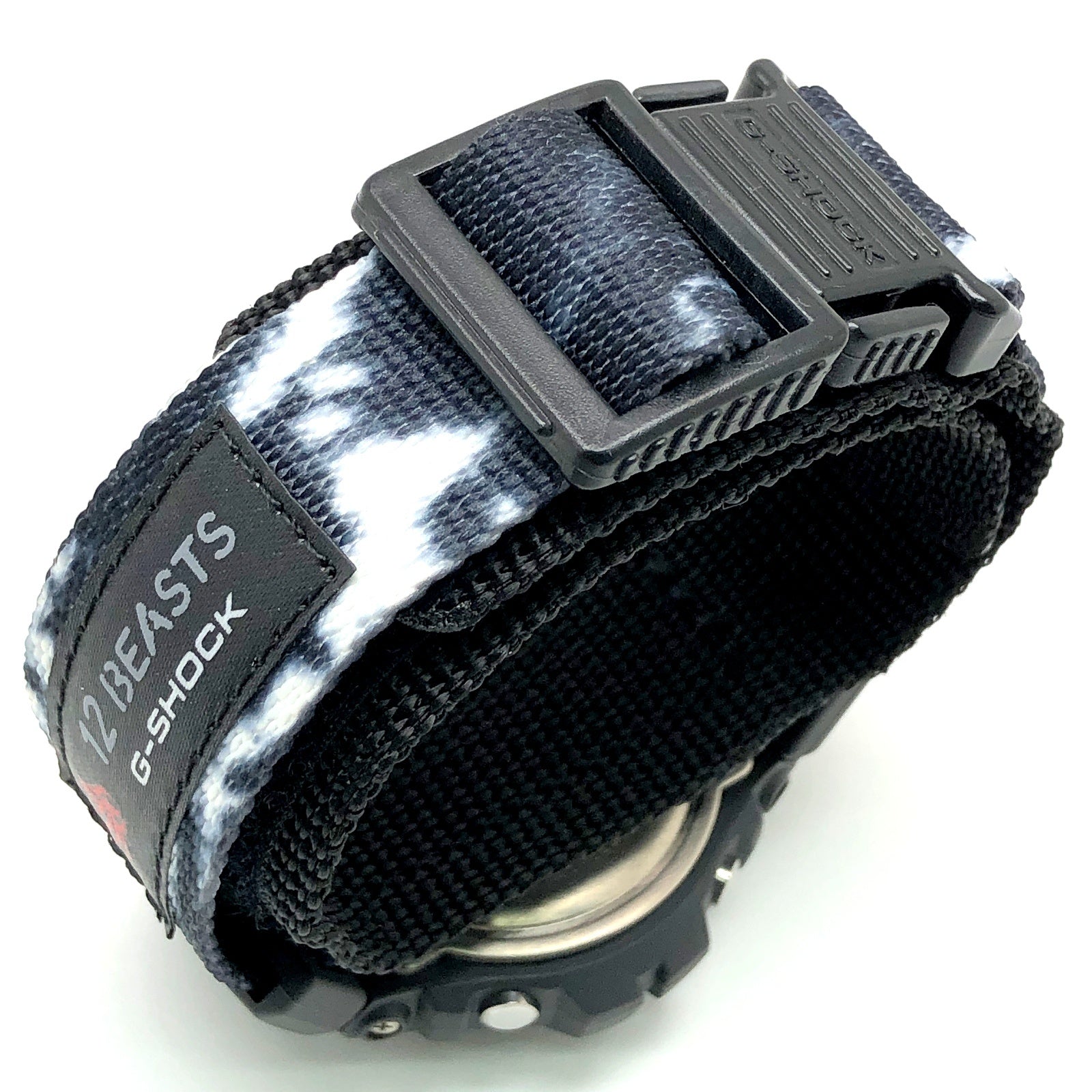 コメント | 2000年3月に発売された、漢字を使用したアジアンテイストをデザインに取り入れた「12BEASTS」シリーズ。ベースにはアナログ/デジタルモデルのG-100を採用し、カラーリングの違う7モデルが発売。古代中国より時や方角を表すのに用いられている「十二支」をテーマに、グラデーションダイヤルが採用された文字盤の時字は漢数字が用いられ、クロスバンドにはタイダイ染めが表現されています。裏蓋には十二支の方位盤が刻印されています。 |