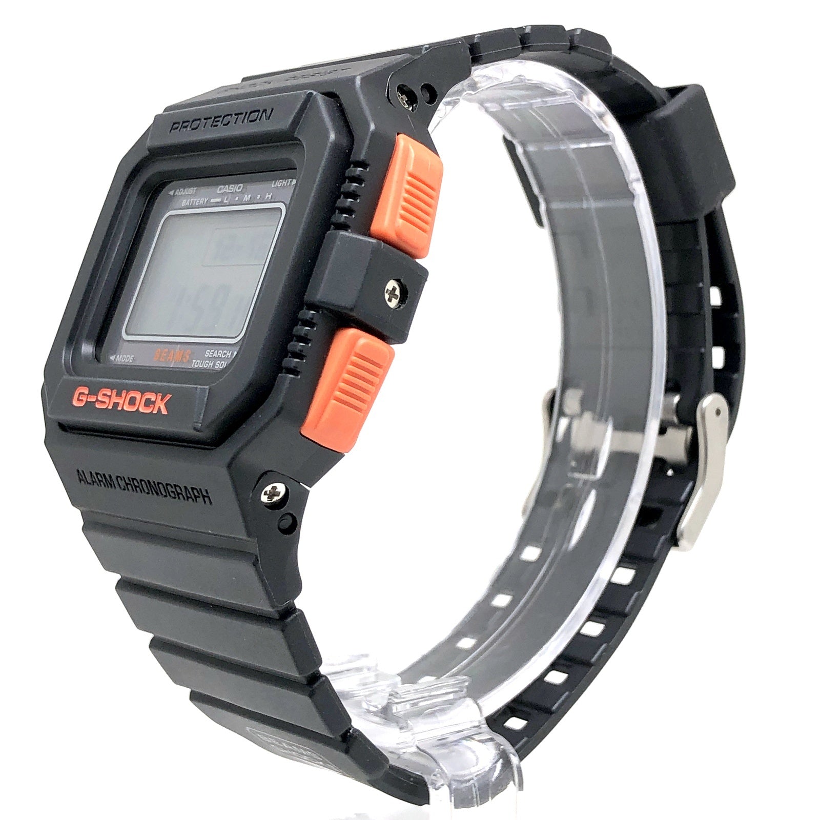 | コメント | 2007年2月に日本のセレクトショップ御三家「BEAMS」の創立30周年を記念して発売されたコラボレーションモデル第3弾です。ベースモデルには「G-SHOCK2」の復刻モデルG-5500を採用。ベースのブラックはそのままに、サイドボタンとロゴをBEAMSカラーの「オレンジ」を配色。裏蓋にはロゴが刻印され、ELバックライト発光時には「地球ロゴ」が浮かび上がります。 |