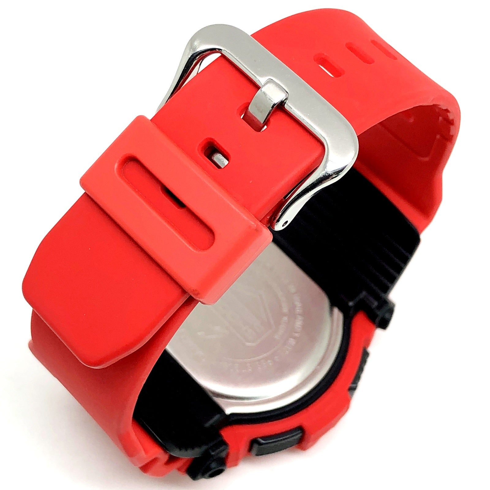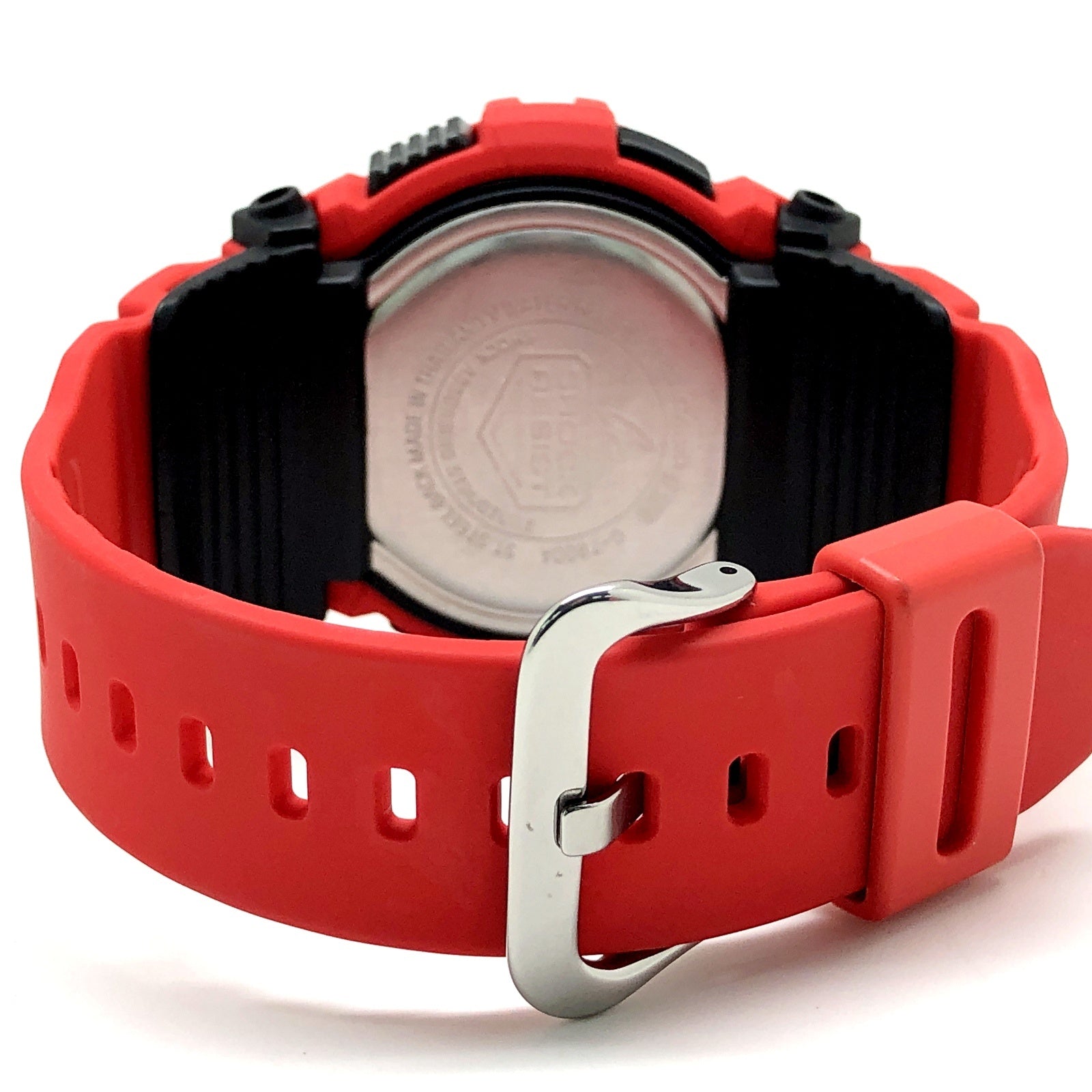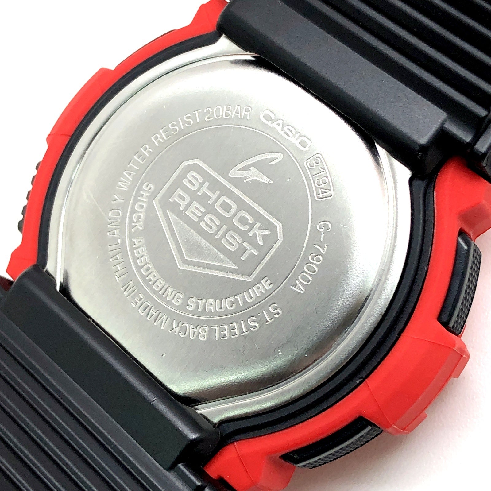 | コメント | 2009年9月に発売された、過酷な環境下での使用を考慮し、防護服などの着用時に厚手グローブをはめたままでも操作しやすい大型ボタンが採用されたG-7900のカラーバリエーション。ベゼルとベルトにはG-SHOCKのブランドカラーのレッドが配色され、ボタンやフロントビスなどのパーツにはブラックが採用されています。視認性を確保する大型液晶が採用されており、実用的なG-SHOCKです。 |