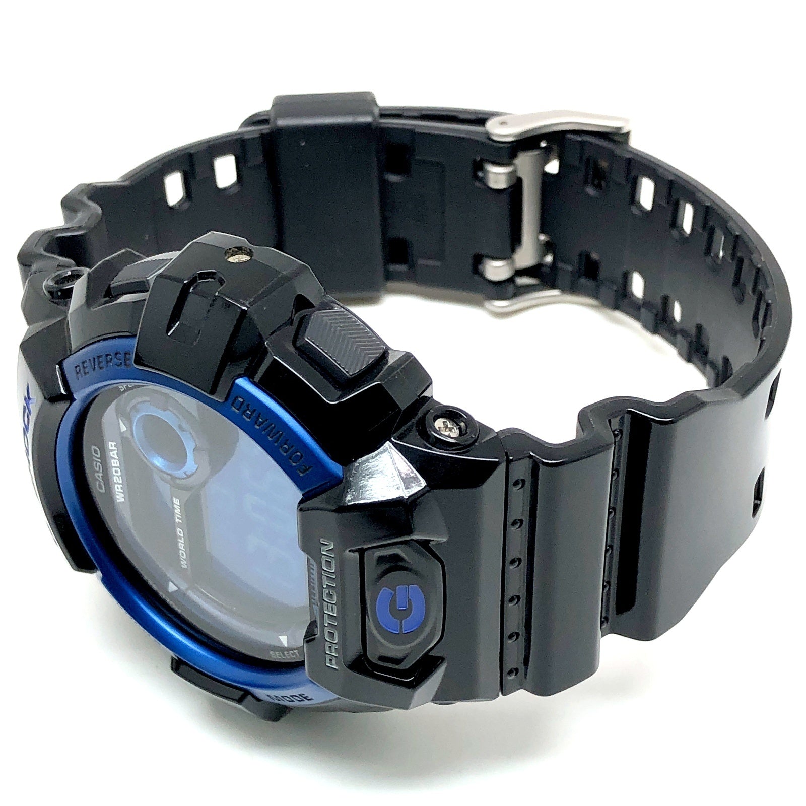 | コメント | 2011年10月に発売された、大型ケースに操作性の高い大型ボタンが採用された8900シリーズびカラーバリエーション。ベルトとベゼルには光沢塗装が施されたブラックが採用され、液晶とアルミ製のベゼルリングにはブルーが配色されています。バックライトには高輝度LEDが採用され、実用性の高いG-SHOCKです。 |
