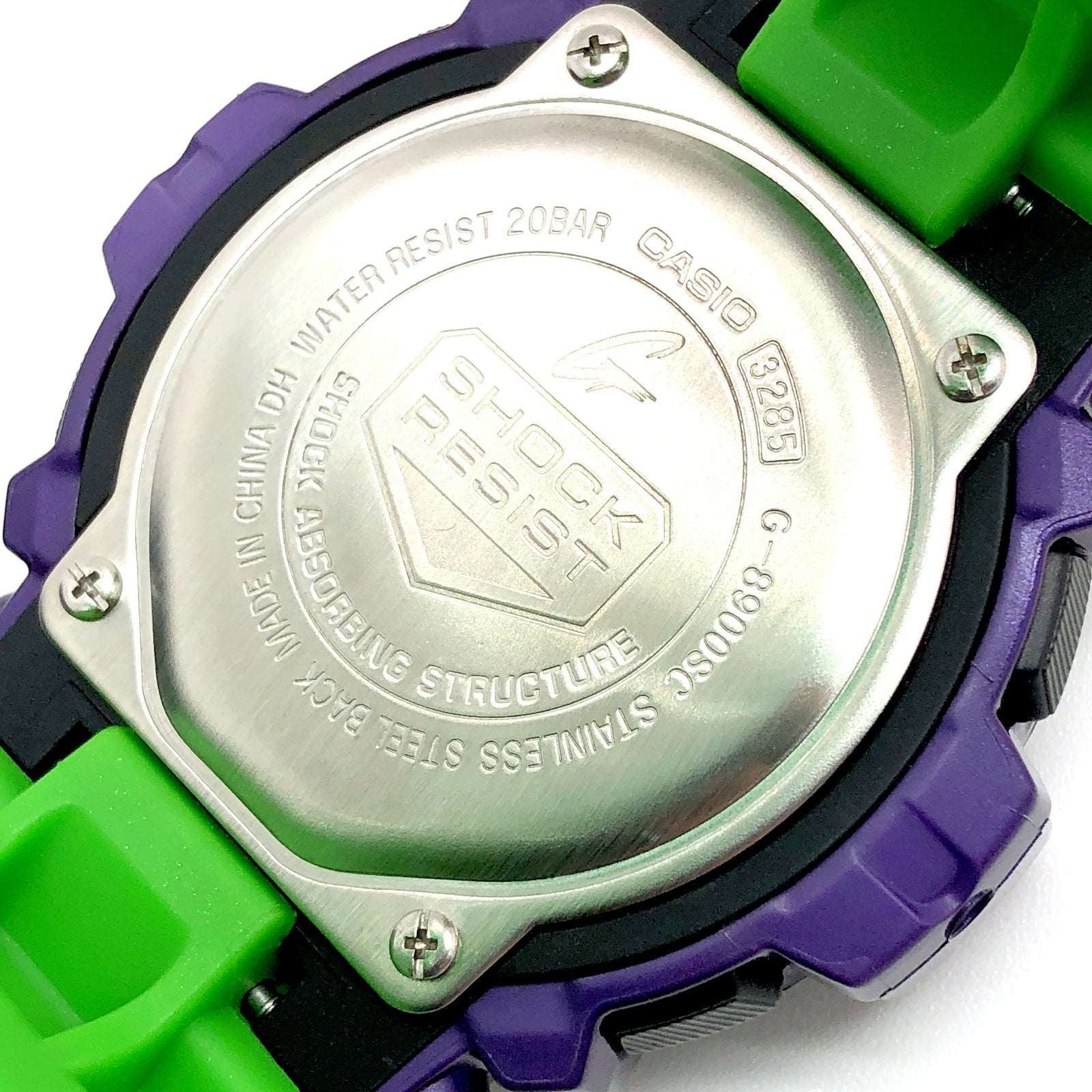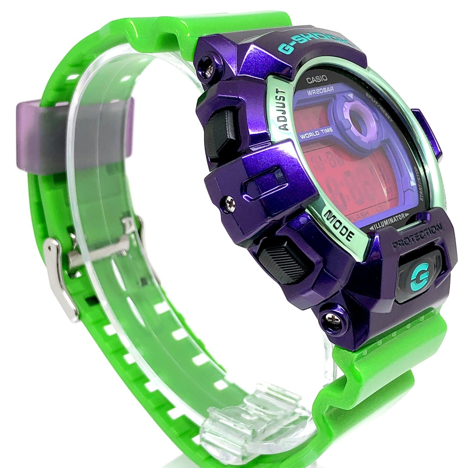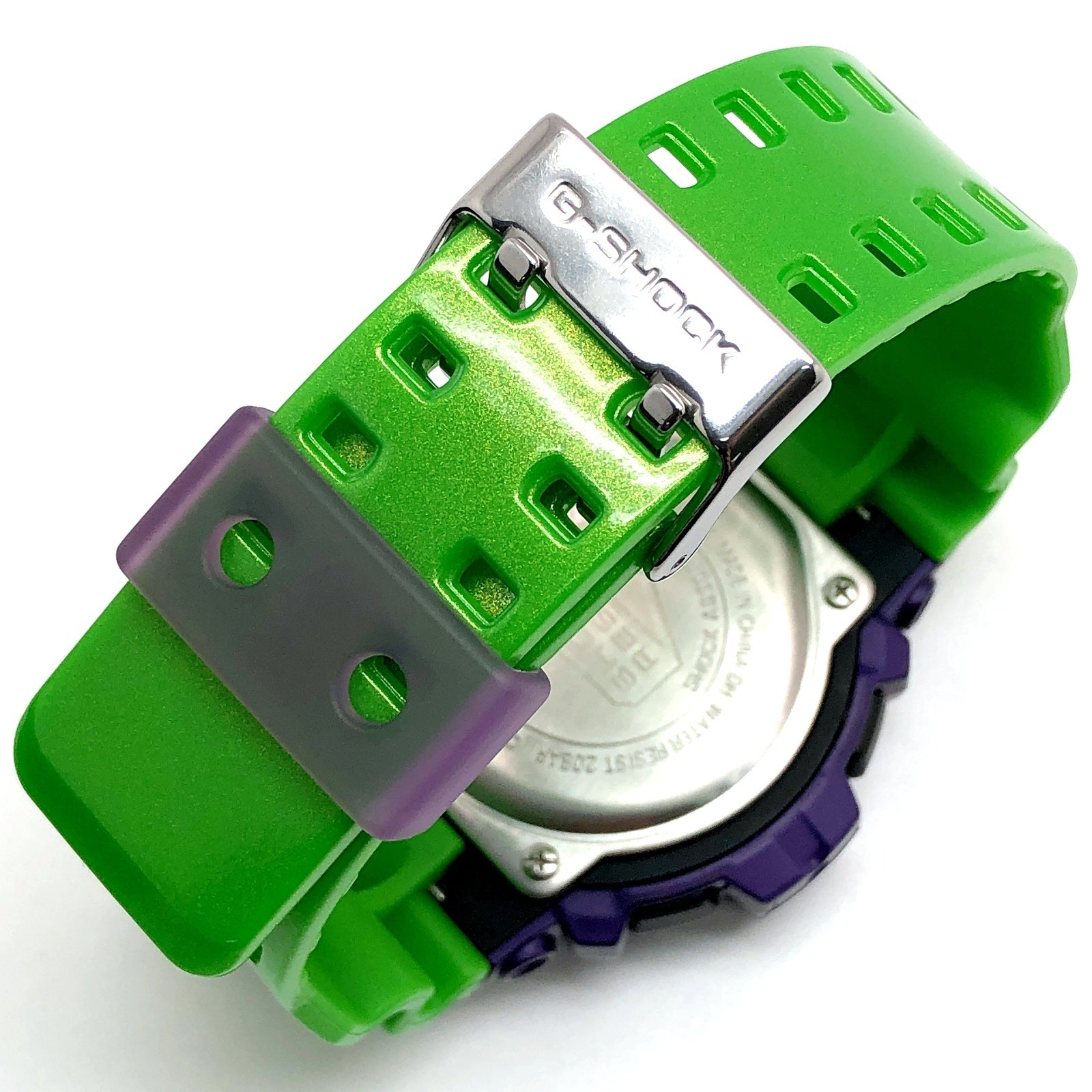 コメント | 2013年7月に発売された「Crazy Colors(クレイジーカラーズ)」。ベースにはアルミのベゼルリングが採用されたビッグケースのデジタルモデルG-8900を採用。ベゼルにはメタリック塗装が」施されたパープルを、バンドには同じくメタリック塗装が施されたグリーンが配色され、液晶にはピンク反転液晶が採用されています。強烈な個性を放つカラーリングのG-SHOCKです。 |