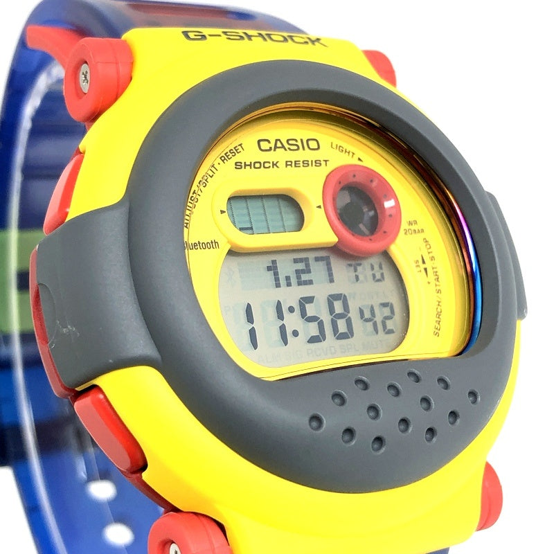 | コメント | 2023年1月に発売された、1994年に登場し、G-SHOCKファンから「ジェイソン」の愛称で呼ばれる人気モデルDW-001の進化モデル。Bluetooth通信機能が搭載され、ベゼルとバンドが交換できるギミックとメタルベゼルが採用されています。プレミア化したDW-001の中でも、特に入手困難だった通称「イエロージェイソン」のカラーリングが再現されており、交換用のベゼルとバンドには、オレンジやグリーン、ブルーのスケルトン樹脂が採用されています。 |