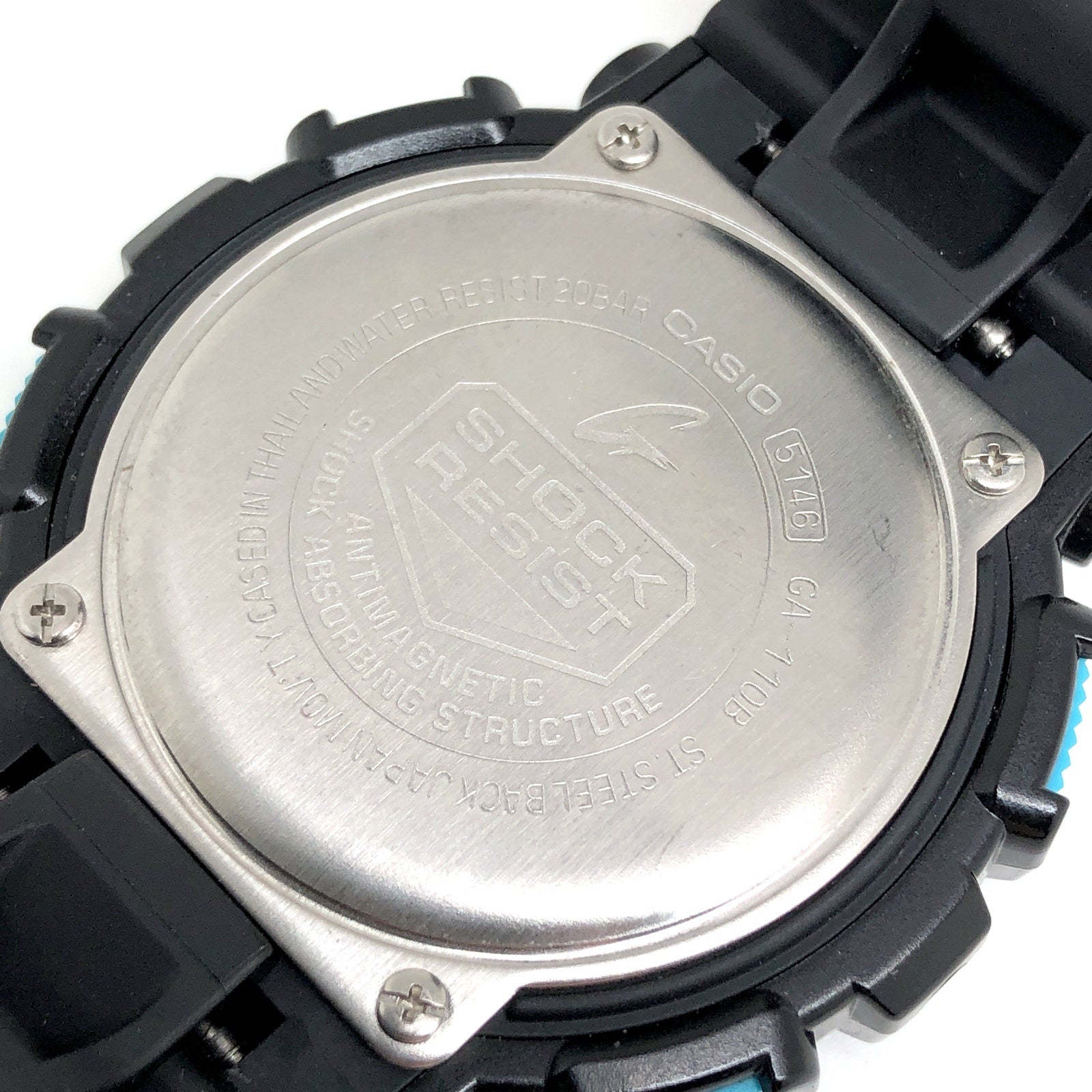 | コメント | 2011年5月に発売された、鮮烈なカラーが特徴の「Hyper Colors(ハイパーカラーズ)」です。ベースには立体的なフェイスデザインとビッグフェイスが人気のアナログ/デジタルモデルGA-110を採用。ベゼルとバンドには光沢塗装のブルーが採用され、液晶とG-SHOCKロゴにはピンク、サイドボタンにはグリーンが配色されています。様々な色でカラーリングされた、徹底的にカラーにこだわったG-SHOCKです。 |