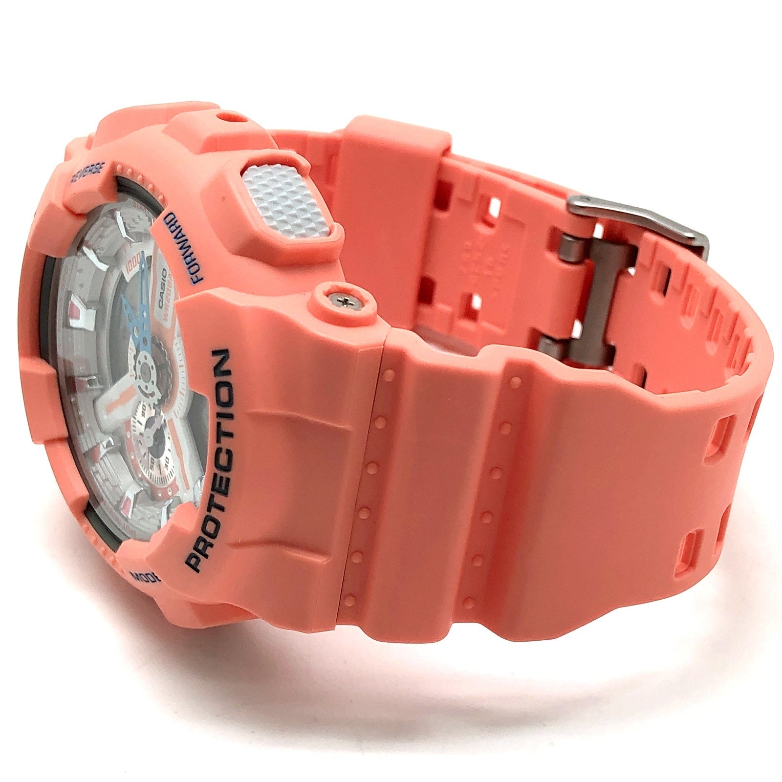 | コメント | 2015年4月に発売された、90年代ファッションをコンセプトに色褪せた風合いを持たせたカラーが特徴の「Dusty Neon Series(ダスティネオンシリーズ)」。ベースにはビッグケースのアナログ/デジタルモデルGA-110を採用。ベゼルとバンドにはサーモンピンクのようなオレンジカラーが採用され、ダイヤルにはシルバー、時分針にはネオンカラーのブルーが配色されています。 |