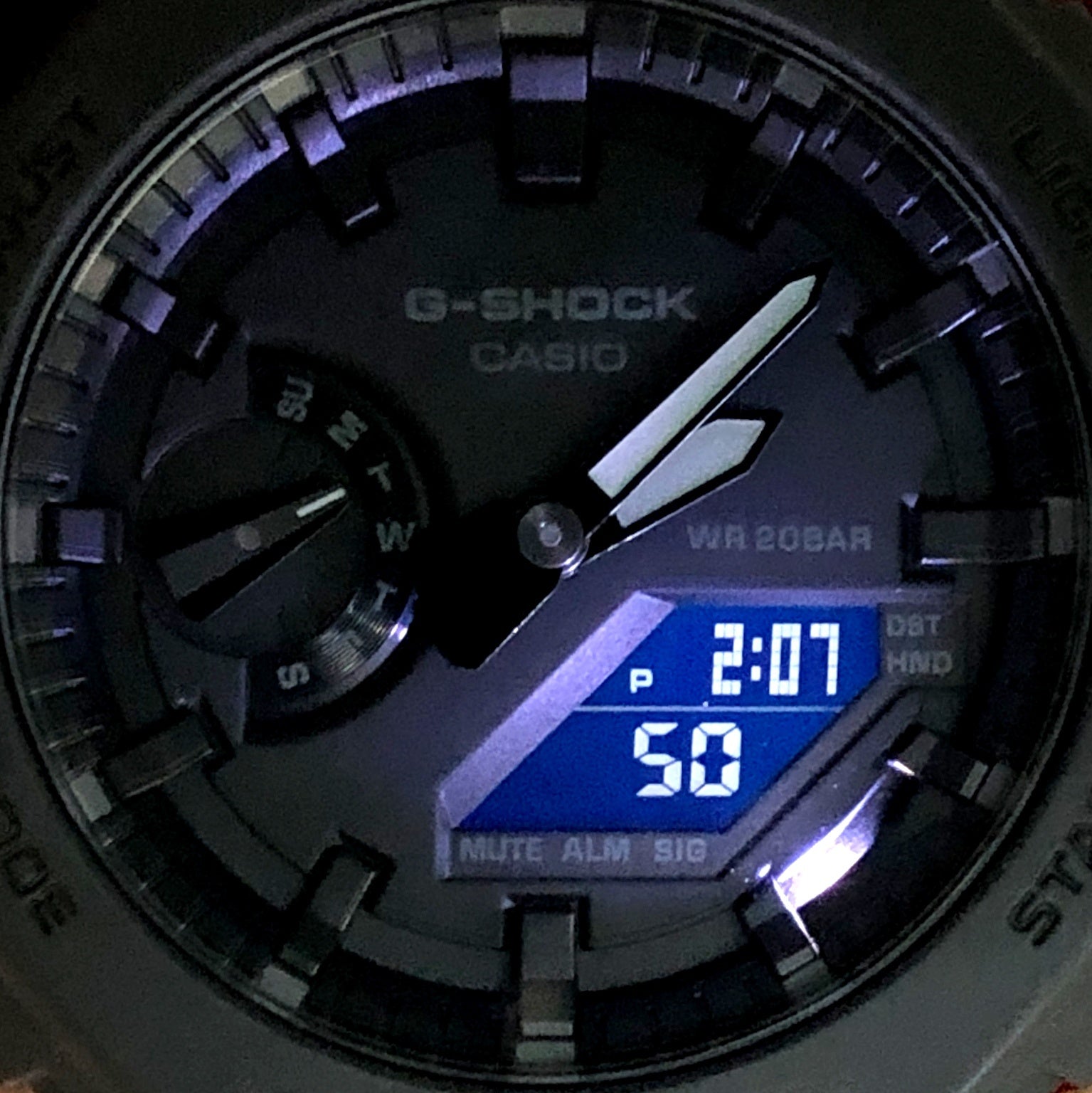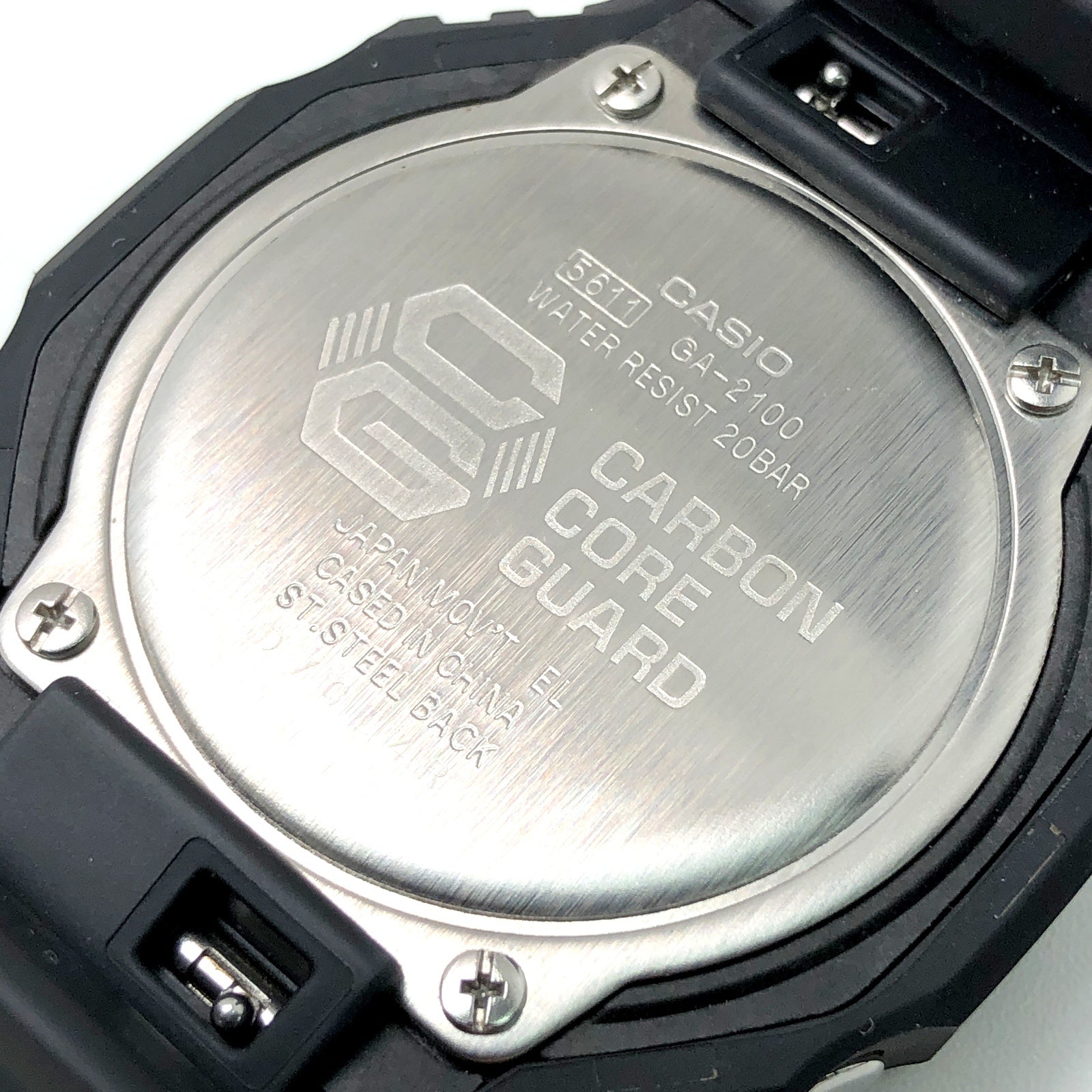 コメント | 2019年8月に発売された、人気のオクタゴンケース(通称カシオーク)が採用されたGA-2100のオールブラックモデルです。DW-5000Cのコンセプトを受け継ぎ、薄型化された人気のアナログ/デジタルモデルです。ベゼルやバンド、遊環やダイヤル、液晶に至るまで、すべてをブラックで統一されたデザインです。 |