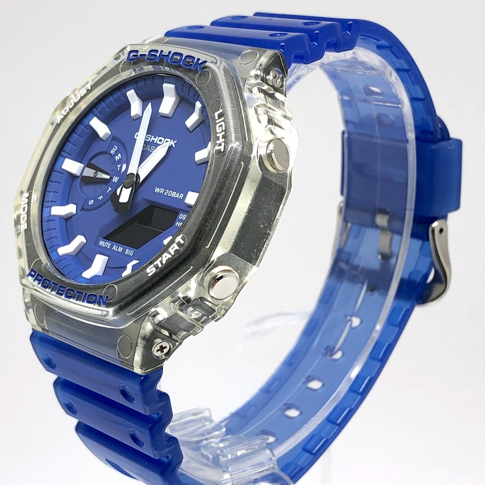 | コメント | 2021年5月に発売された、八角形のオクタゴンケースが採用された通称「カシオーク」の、未知の海岸への探求がテーマの「HIDDEN COAST(ヒドゥンコースト)」シリーズ。ベゼルにはクリアなホワイトスケルトン、バンドにはブルースケルトンが採用された夏にぴったりのG-SHOCKです。 |