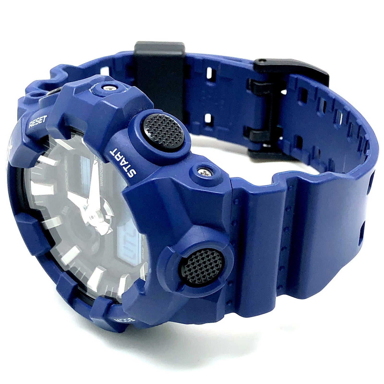 | コメント | 2017年2月に発売された、ビッグケースにフロントボタンが搭載されたアナログ/デジタルモデルGA-700のカラーモデル。ベゼルとベルトにはストリートファッションと相性のいいネイビーブルーが配色され、文字盤にはブラック、時分針にはシルバーが採用されています。 |