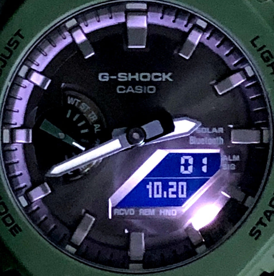 | コメント | 2022年5月に発売された、八角形フォルムのオクタゴンケースが採用され「カシオーク」の愛称で親しまれているアナログ/デジタルモデルGA-2100シリーズにタフソーラーとBluetooth通信機能が搭載されたモデル。Bluetooth通信機能で専用アプリ「CASIO WATCHES」と連携することにより正確な時刻情報を取得することができます。 |