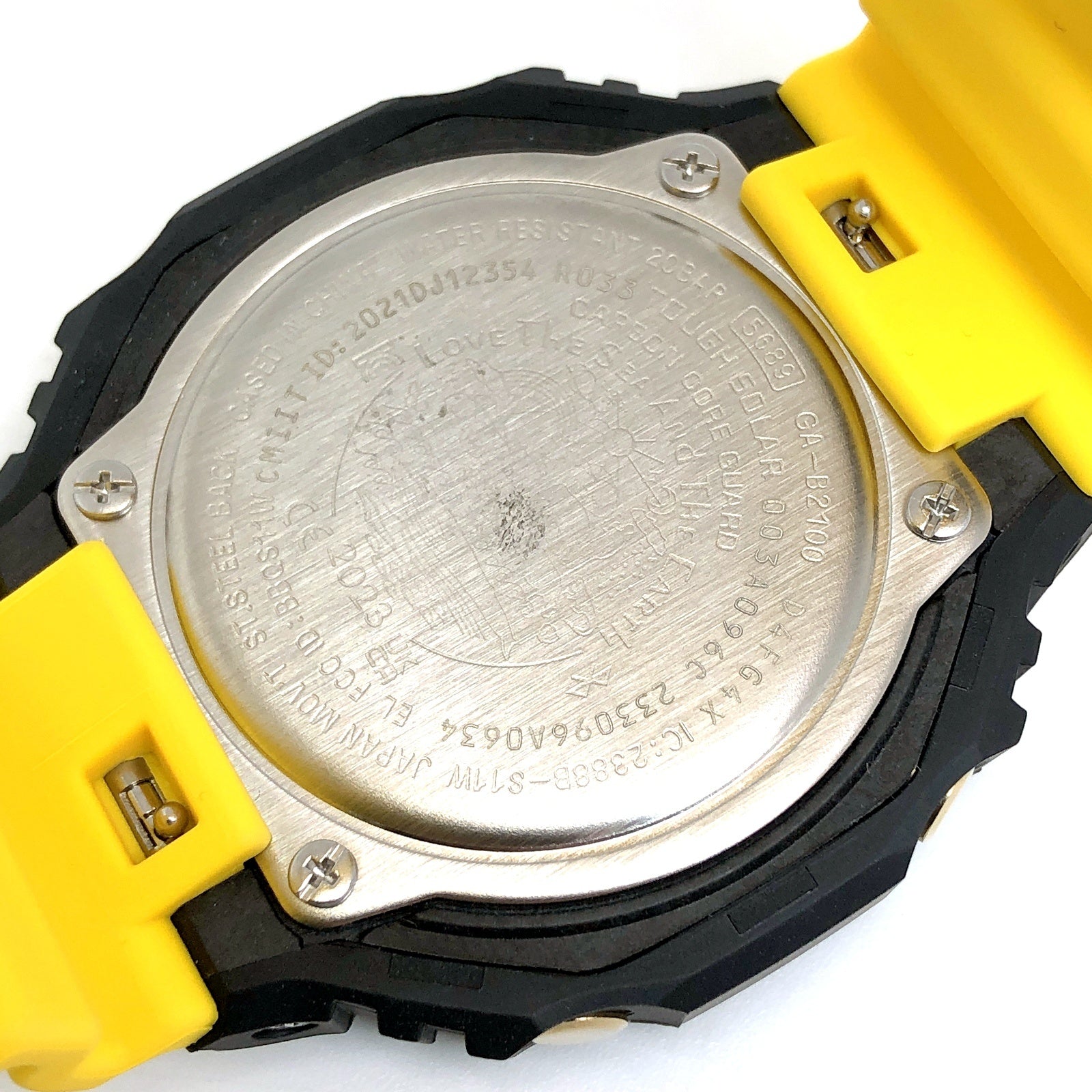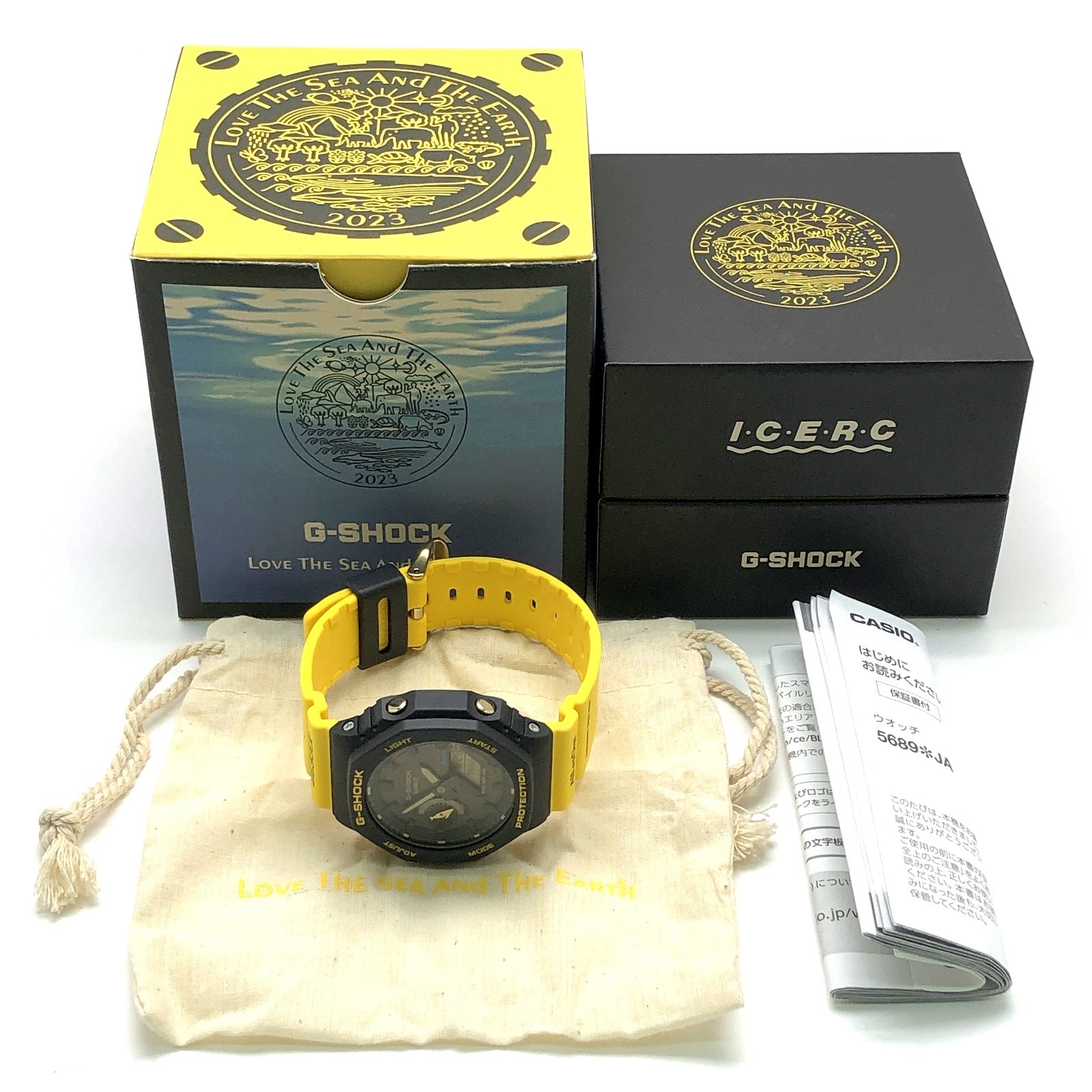 | コメント | 2023年6月に発売された、イルカ・クジラと自然の素晴らしさ伝える活動に取り組む「ICERC(アイサーチジャパン)」とのコラボレーションモデル「イルクジ2023」です。初代イルクジモデルDW-6100DWのブラックとイエローのカラーを復刻されており、ベースモデルはモバイルリンクとタフソーラーが搭載されたオクタゴンケースが人気のアナデジモデルGA-B2100を採用。バンドにはイルクジのテーマである「Love The Sea And Earth」の文字とICERCのロゴ、遊環にはクジラがプリントされています。裏蓋には「Love The Sea And Earth」のシンボルマークが刻印されています。 |