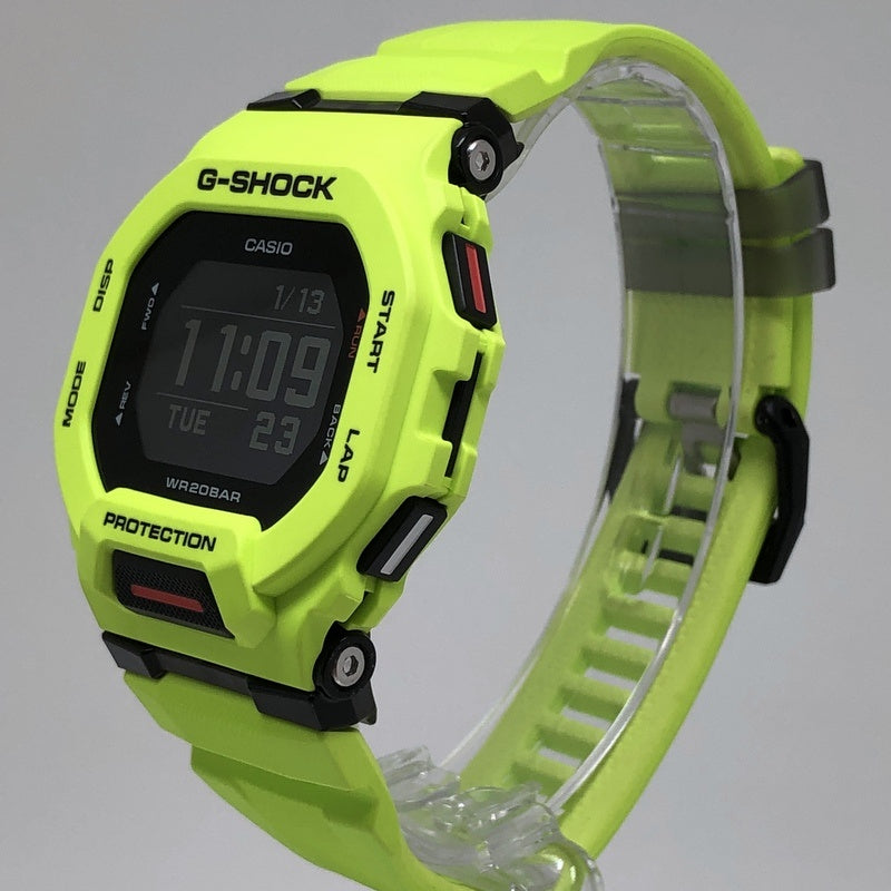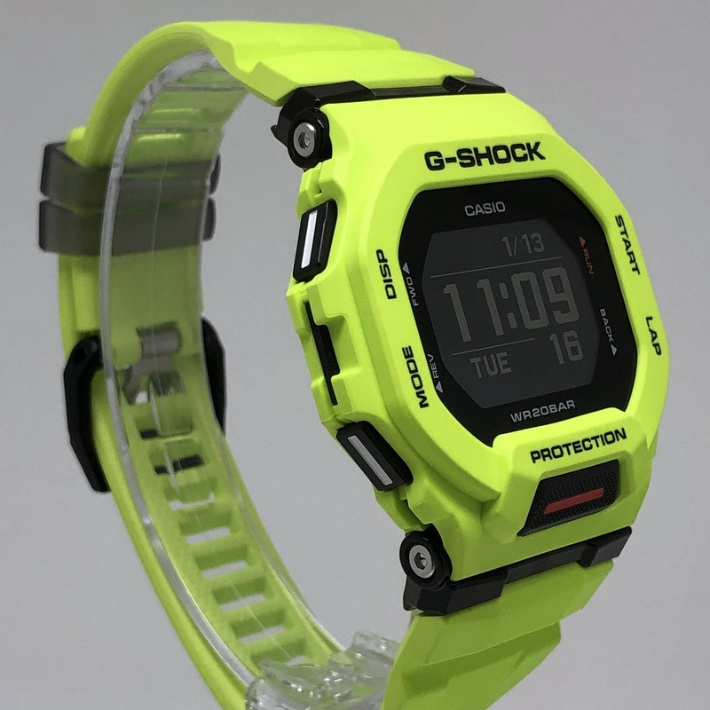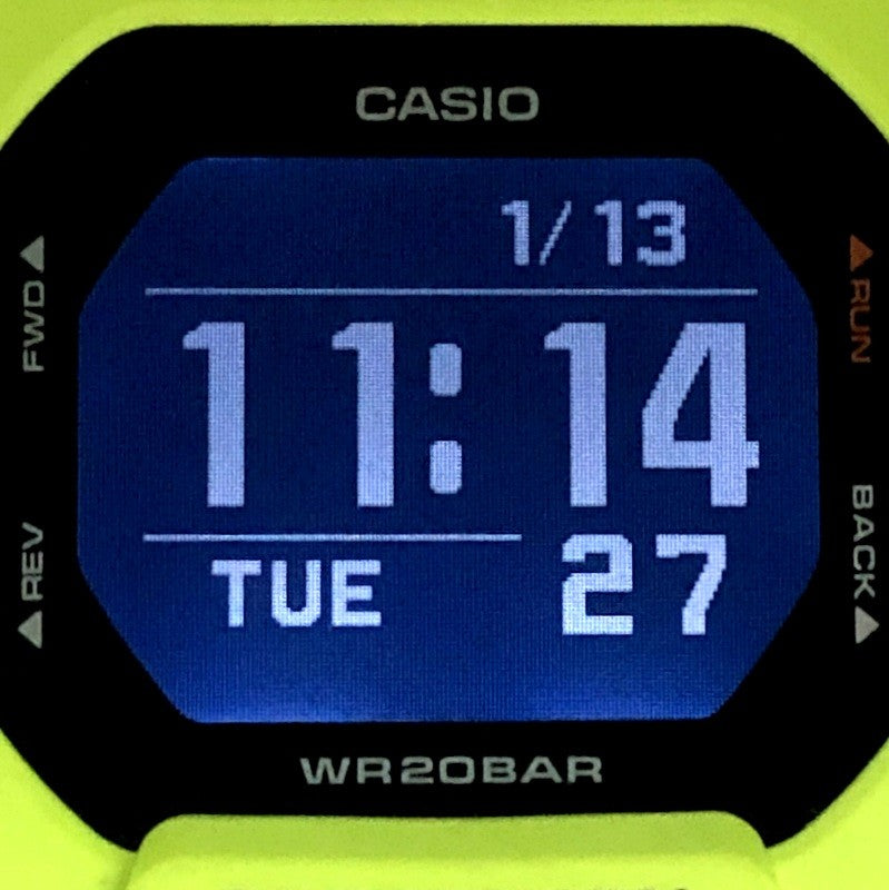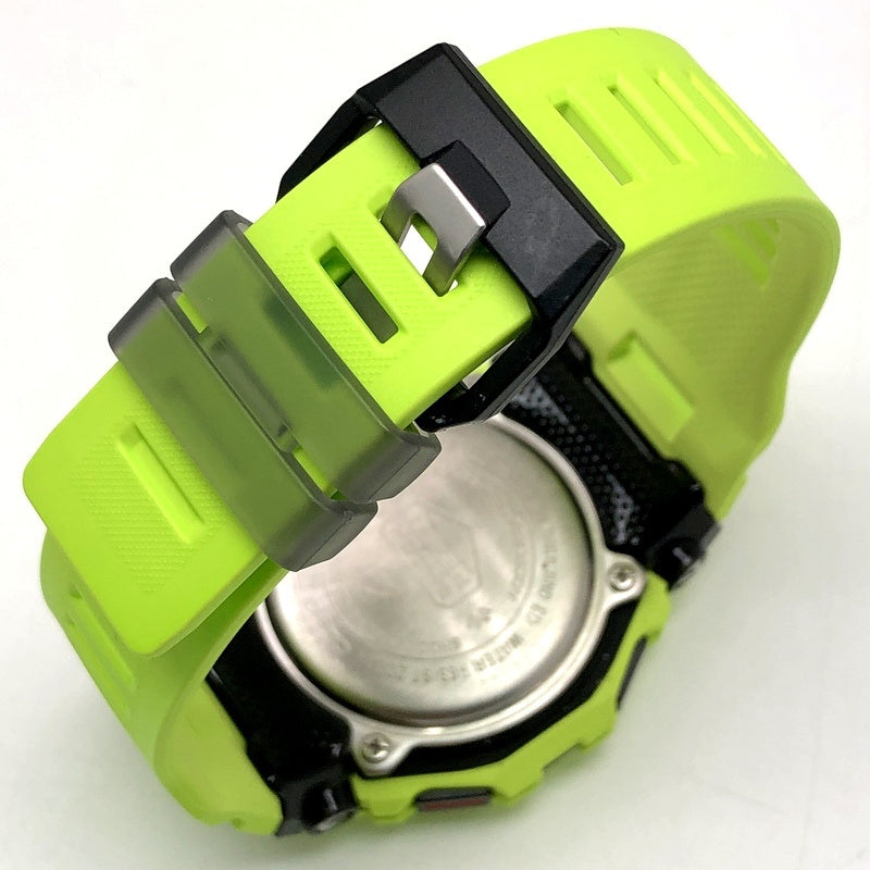 | コメント | 2021年7月に発売された、G-SHOCKのスポーツライン「G-SQUAD(ジースクワッド)」です。イエローを基調としたデザインで、ベゼルとバンドにはイエローを採用し、ダイヤルと反転液晶にはブラックが配色されています。加速度センサーが搭載されており、距離・速度・ペースを計測できるほか、Bluetooth通信機能でスマートフォンのGPS機能と連携することで、計測距離を補正することができます。 |
