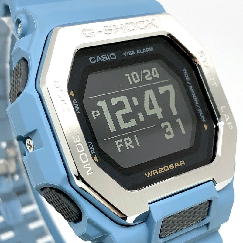 | コメント | 2024年5月に発売された、G-SHOCKのスポーツラインG-LIDEのBluetooth通信機能を搭載したスマートフォン連携モデル。ベゼルとバンドにはビーチの自然をイメージしたライトブルーのソフトウレタン樹脂が採用され、ベゼルのトップ部分にはメタルベゼルを採用。バンドにはフィット性と水、汗逃げを考慮したスリット入りのソフトウレタンバンドが採用され、高精細MIP液晶が採用され視認性が向上されています。加速度センサーにより歩数や距離・速度・ペースが計測でき、タイドグラフ、ムーンデータに加え、満潮/干潮時間、満潮/干潮の潮位、日の出/日の入時間が表示可能できます。専用アプリ内の世界約3300カ所からタイドポイントの潮汐情報や日の出/日の入時間を時計側に設定できます。 |