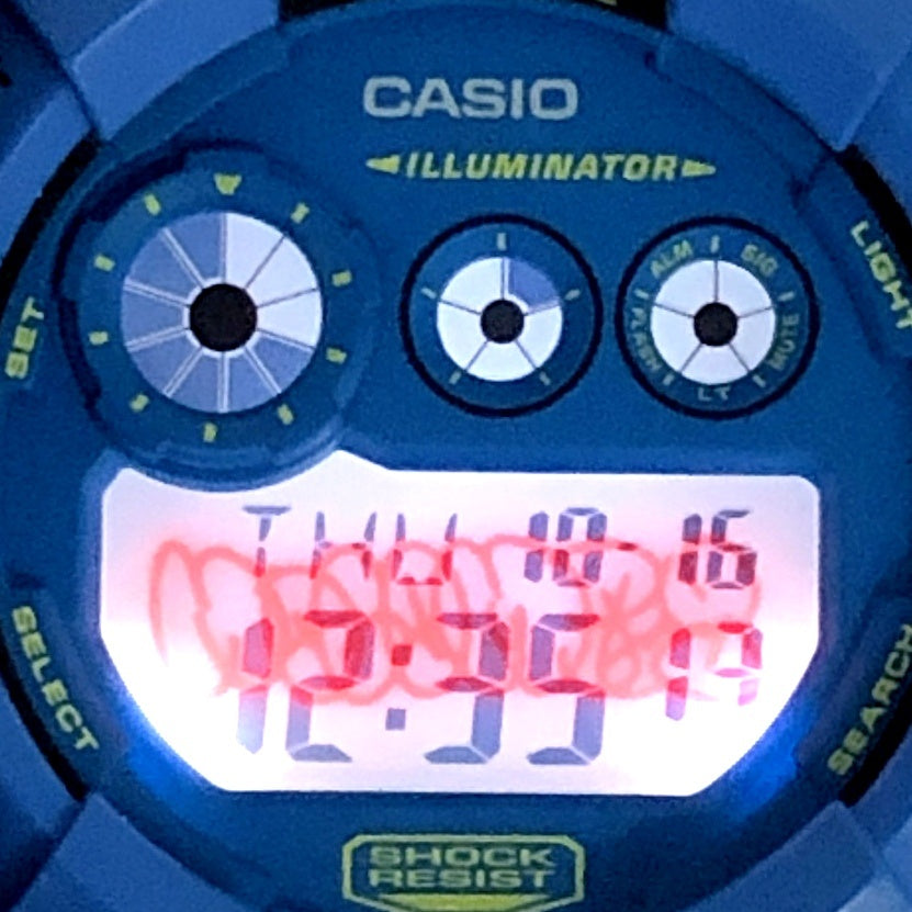 | コメント | 2018年3月に発売された、ヒップホップやボードカルチャーの世界観をイメージし、大胆なカラーブロックでデザインされたモデル。ベースにはビッグケースのデジタルモデルGD-120が採用され、濃淡のあるブルーとイエローでカラーリングされています。LEDバックライト発光時には、ドイツを拠点にMAROK名義でグラフィックデザイナーとしても活動しているトーマス・マレッキ氏が手掛けた「No-Cpmply」のグラフィックが浮かび上がります。 |