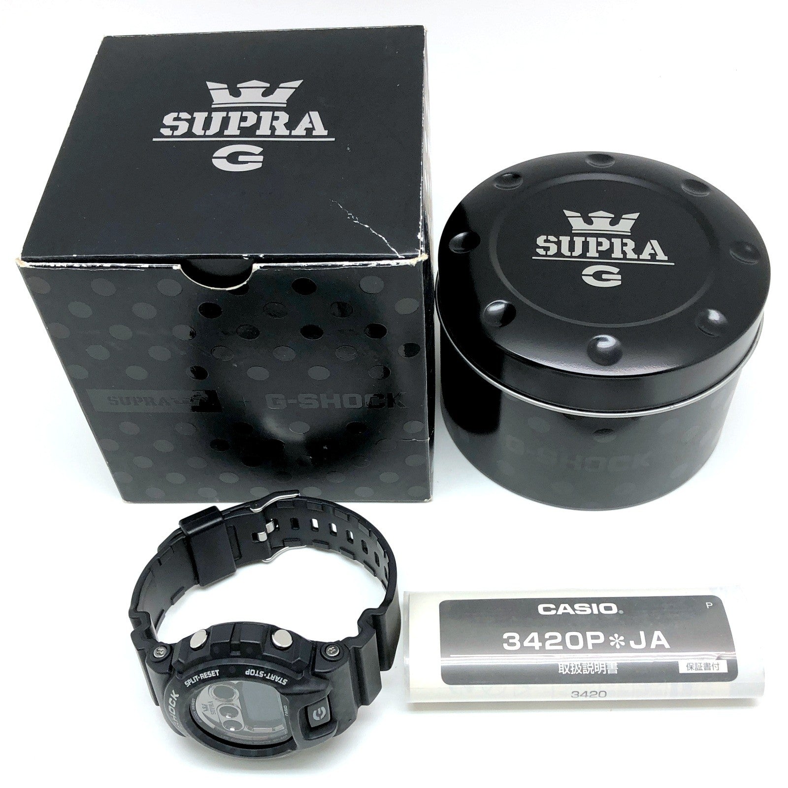 コメント | 2015年8月に発売された、アメリカの南カリフォルニア発のフットウェア・ライフスタイルブランド「SUPRA(スープラ)」とのタイアップ・コラボレーションモデル第2弾。ベースにはDW-6900が大型になったGD-X6900を採用し。スタンダードなブラックを基調に、ベゼルとバンドにはSUPRAのスニーカーに使用されるドット柄(水玉)が施され、バンドにはロゴがプリントされています。文字盤にはミラーダイヤルが採用され、中央上部にはロゴが配置され、裏蓋にも同様のロゴが刻印されています。 |