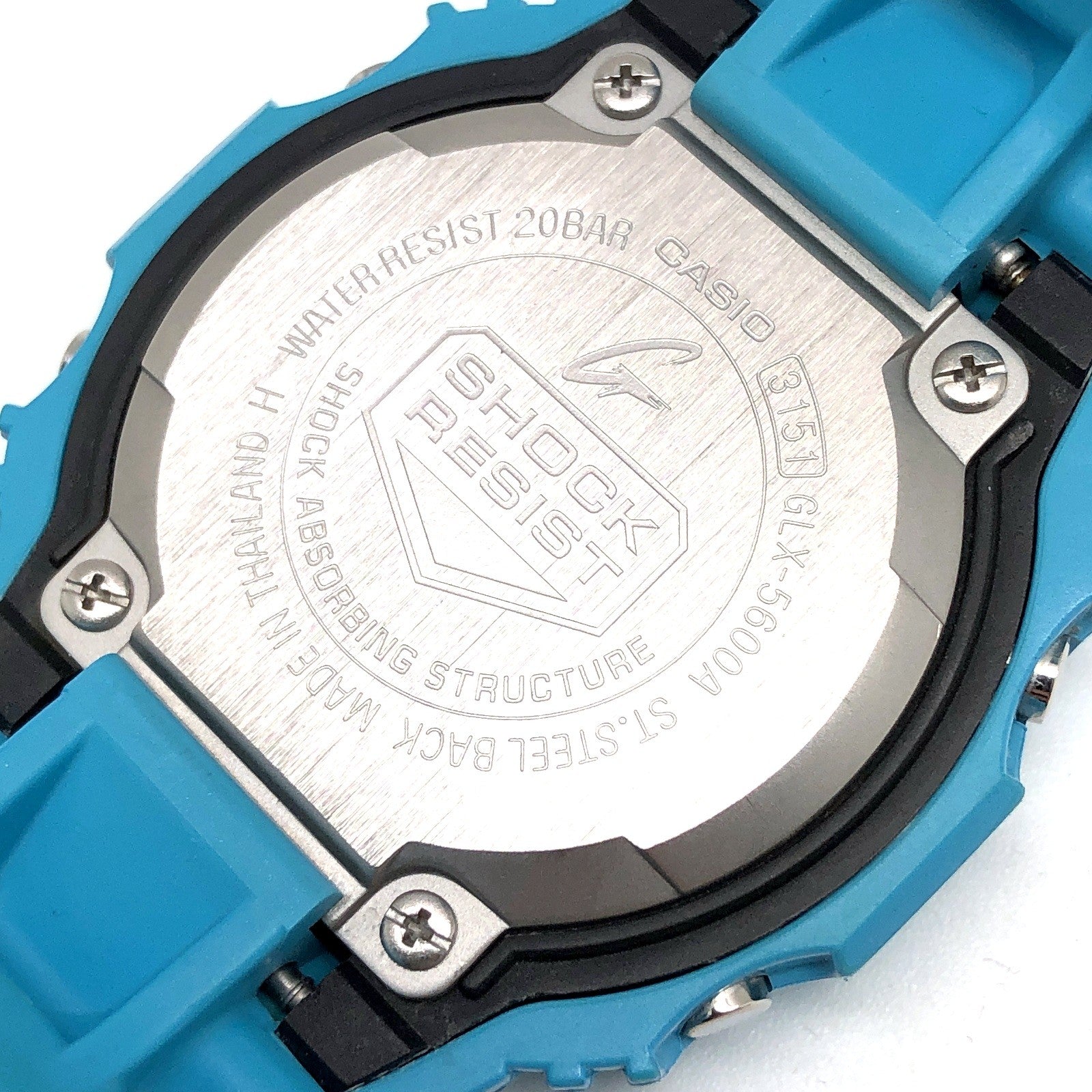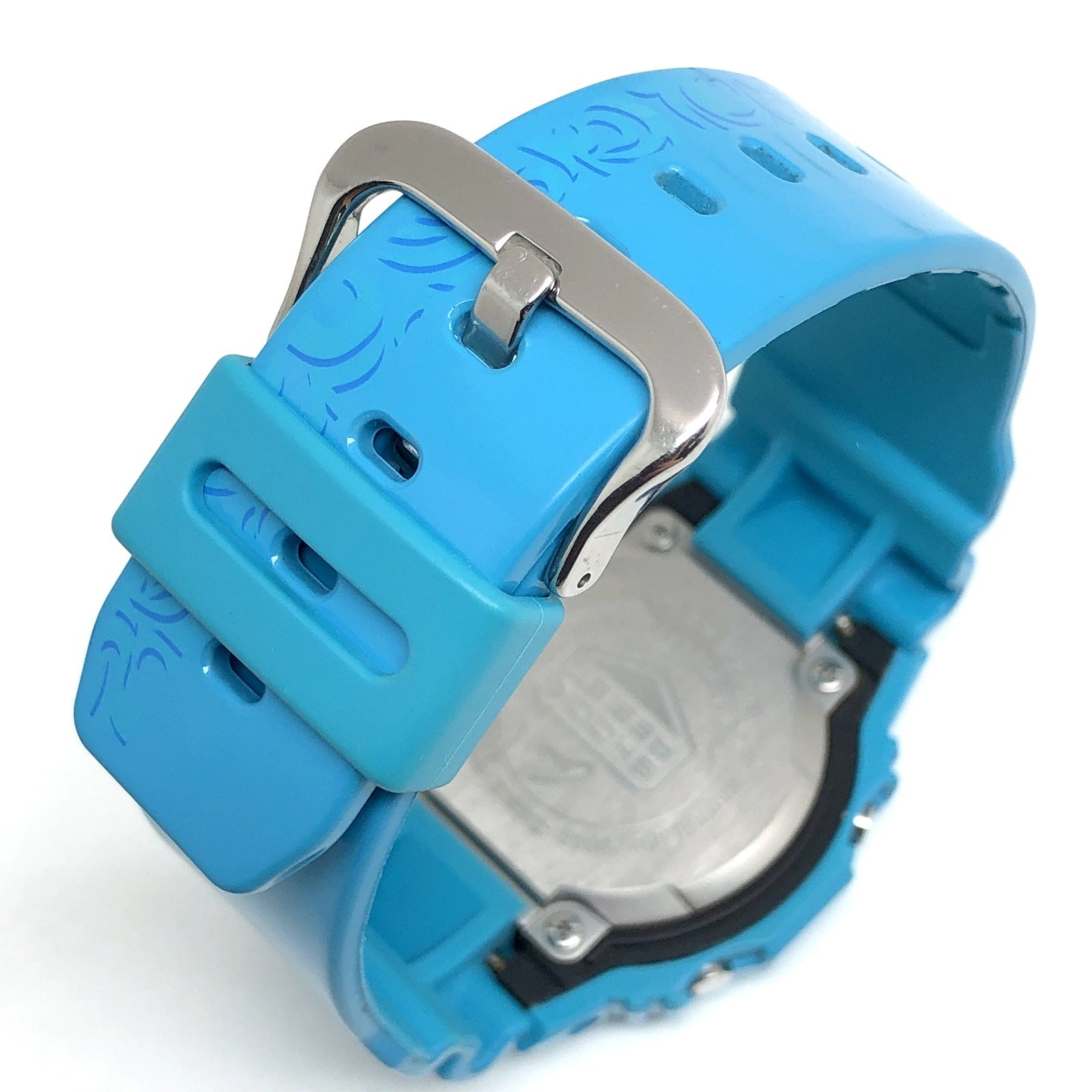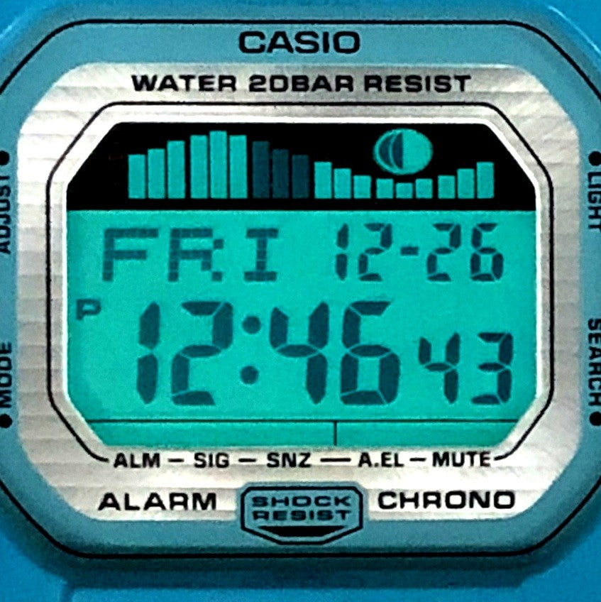 | コメント | 2009年5月に発売された、サーファーの必須機能であるタイドグラフとムーンデータが搭載されたG-LIDEの夏モデル。ベースにはスクエアデザインが人気の5600シリーズが採用され、ベゼルとバンドには光沢塗装が施されたライトブルーが配色されています。ミラー仕上げのタイドグラフと、シルバーのメタル文字盤が採用され、夏らしいデザインに仕上げられています。 |
