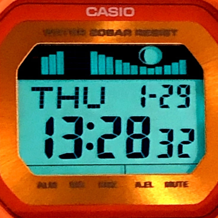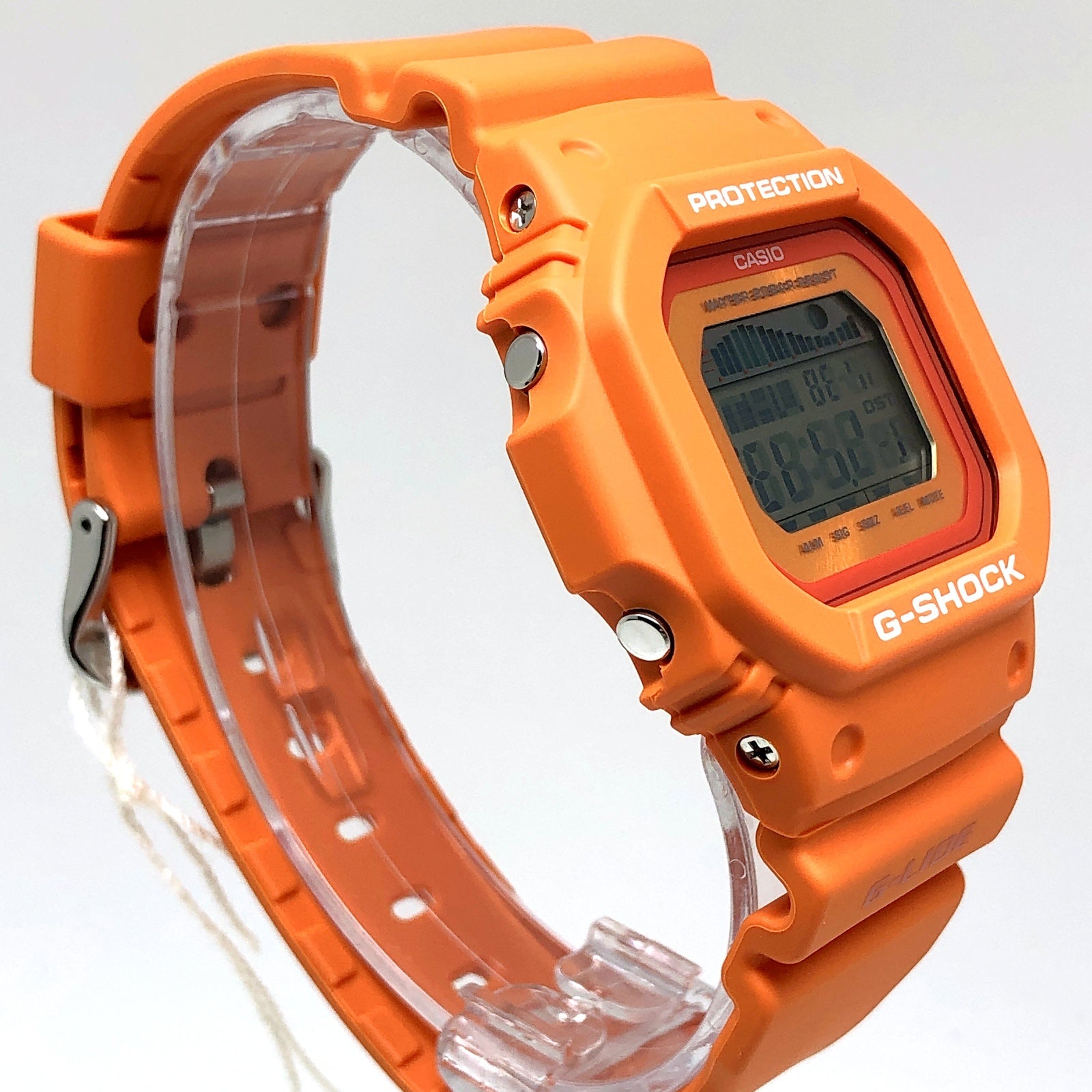 | コメント | 2022年5月に発売された、サーファーの必須機能であるタイドグラフとムーンデータが搭載されたG-LIDEの夏モデル。ベースにはスクエアデザインが人気の5600シリーズが採用され、ベゼルとバンドには光ビビットカラーのオレンジが配色されています。ミラー仕上げのタイドグラフと、シルバーのメタル文字盤が採用され、夏らしいデザインに仕上げられています。 |
