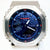 | コメント | 2021年11月に発売された、日本を代表するプロゴルファー「石川遼選手」のシグネチャーモデル第2弾。ベースには、ベゼルにメタル素材を採用したオクタゴンケースのアナデジモデルGM-2100を採用。ベゼルにはスタンダードなシルバー(ステンレス)が、バンドにはホワイトが採用されています。ダイヤルにはメタリックネイビーでゴルフボールがデザインされ、アクセントカラーにオレンジが採用されています。裏蓋には「石川遼選手」のサインと「カシオワールドオープン40周年」のロゴが刻印されています。普段使いはもちろん、ゴルフのラウンドにも使用できるスタイリッシュなデザインのG-SHOCKです。 |
