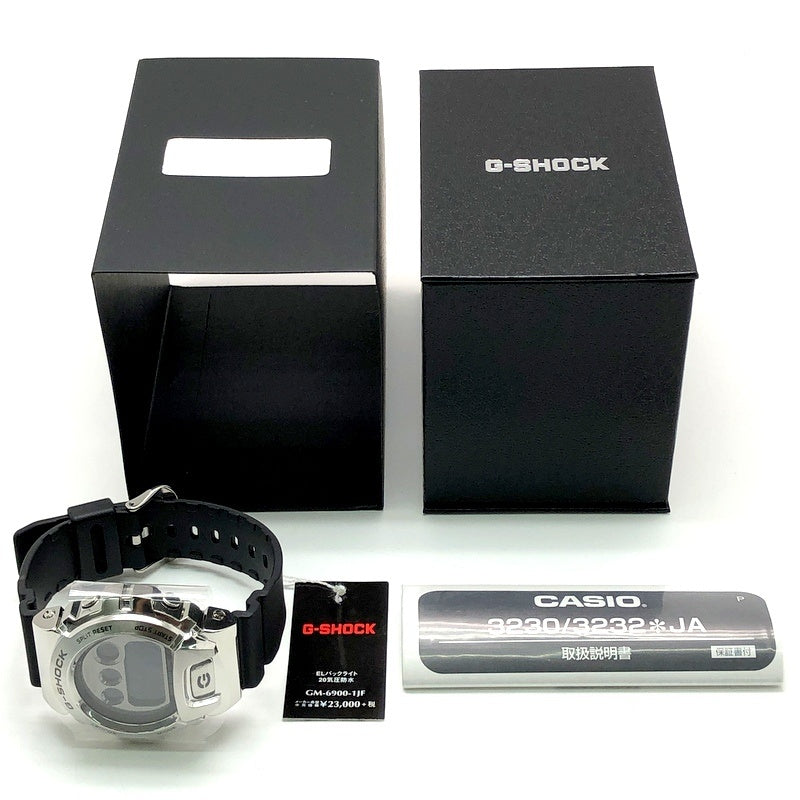 コメント | 2020年2月に発売された、3つ目デザインが人気のDW-6900にメタルベゼルを採用した「METAL COVERED(メタルカバード)」シリーズ。ステンレス製のメタルベゼルにはスタンダードなシルバー(ステンレススチール)が配色され、バンドにはブラックが採用されています。文字盤にはミラーダイヤルが、液晶には反転液晶が採用されています。 |