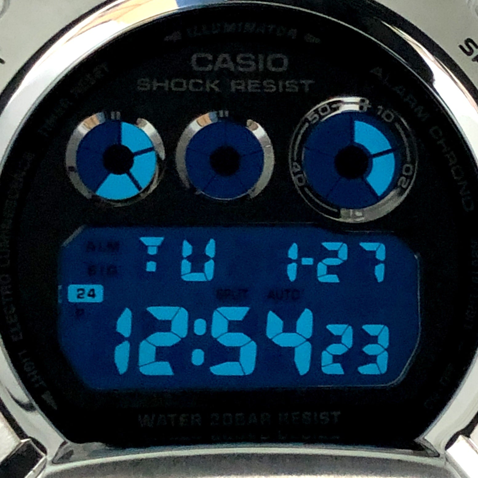 | コメント | 2020年2月に発売された、3つ目デザインが人気のDW-6900にメタルベゼルを採用した「METAL COVERED(メタルカバード)」シリーズ。ステンレス製のメタルベゼルにはスタンダードなシルバー(ステンレススチール)が配色され、バンドにはブラックが採用されています。文字盤にはミラーダイヤルが、液晶には反転液晶が採用されています。 |
