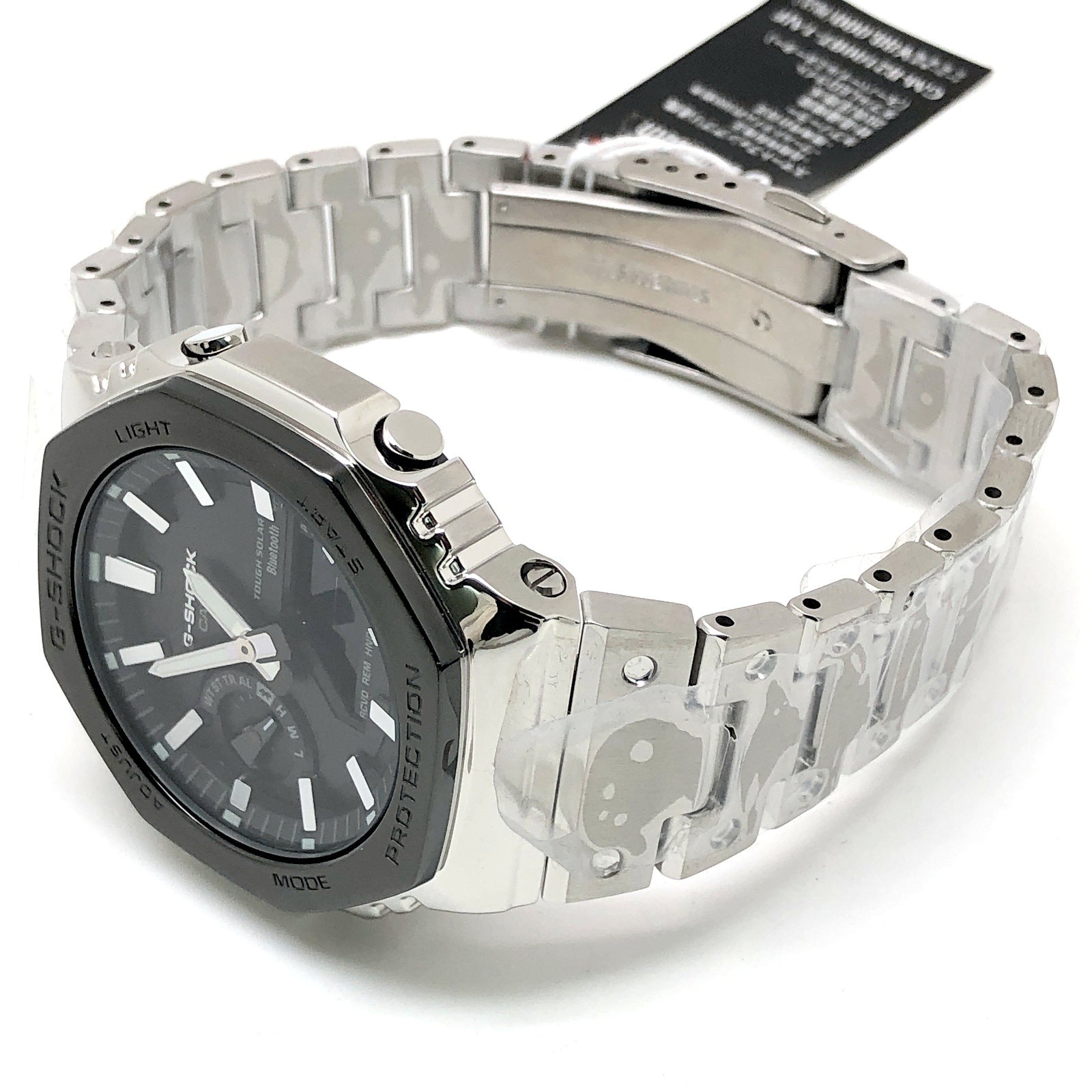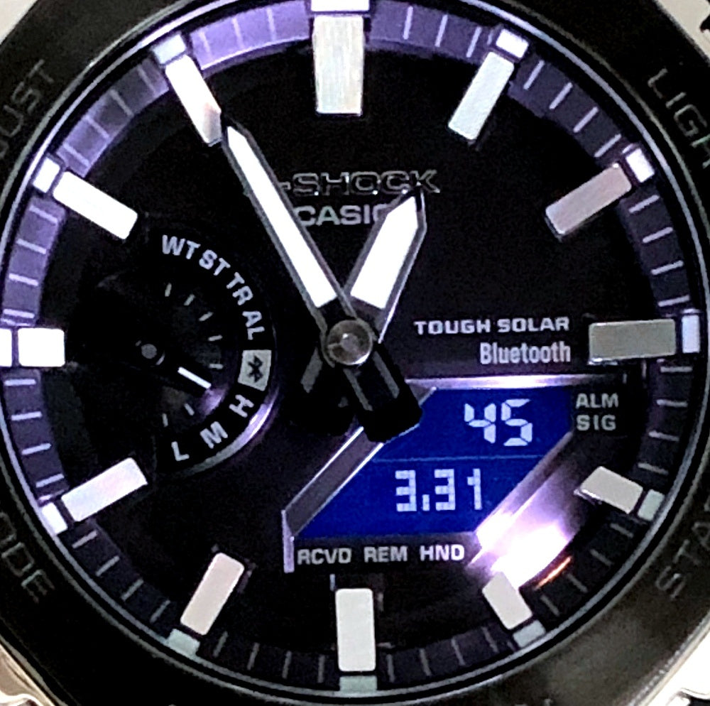 | コメント | 2025年10月に発売された、オクタゴンケースが採用されカシオークの愛称で親しまれているGA-2100シリーズのフルメタルモデルです。高密度実装技術によりスリムで高機能なモジュールを搭載することで薄型化を実現されています。トップベゼルにはヘアライン仕上のブラックIPが施され、バンドにはスタンダードなシルバー(ステンレススチール)、文字盤にはブラックが配色されています。裏蓋はスクリューバック仕様となっており、タフソーラーとダブルLEDライトの搭載により実用性も兼ね備えています。Bluetooth通信機能で専用アプリを接続することにより正確な時刻情報を取得することができます。 |