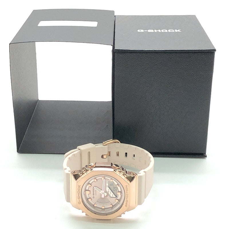 コメント | 2023年8月発売に発売された、八角形のオクタゴンケースが採用されカシオークの愛称で親しまれているGA-2100シリーズを小型化したミッドサイズモデルGMA-S2100のメタルカバードです。ベゼルと尾錠にはピンクゴールドIPが施されたメタル素材が採用され、バンドには同系色のピンクベージュが配色されています。 |